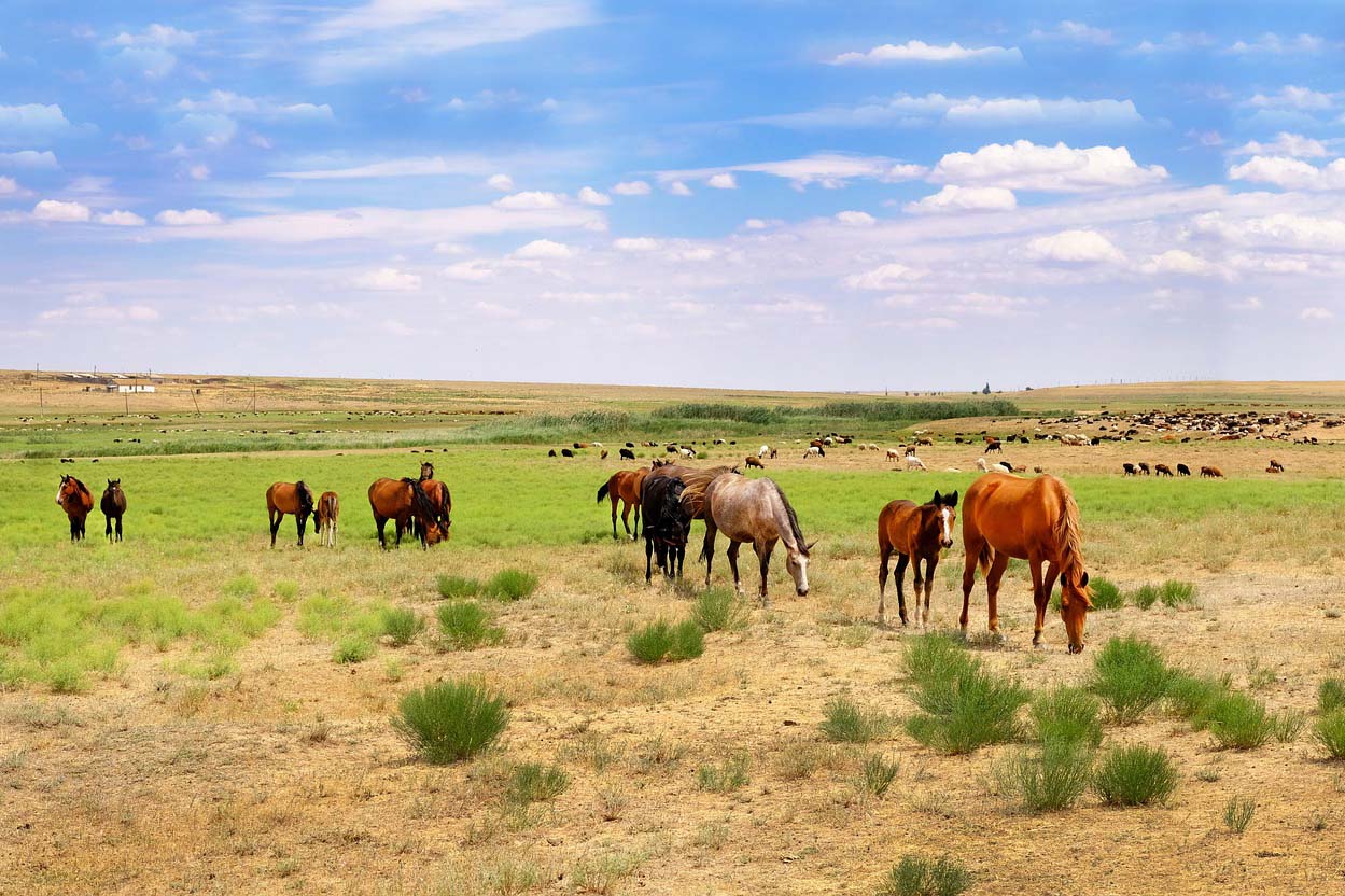 Многие полагают, что степь — это многокилометровая выжженная равнина. Однако ойрат-калмыцкая степь поражает разнообразием. В калмыцких заповедниках свободно пасутся верблюды, сайгаки и табуны диких лошадей. Особенно красочно выглядит степь весной.