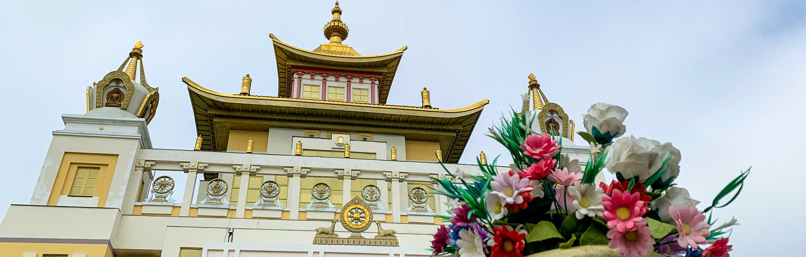 Крупнейший буддийский храм в Европе, открытый в 2005 году. Высота здания — 63 метра. Внутри находится покрытая сусальным золотом статуя Будды Шакьямуни высотой 9 метров, инкрустированная алмазами и бриллиантами. Вокруг Будды расположены 17 статуй учителей буддизма. Храм окружен 17 пагодами с молитвенными барабанами. Стены храма украшены традиционными тибетскими орнаментами и изображениями буддийских божеств (танками). Купол символизирует ступеньку к просветлению. При посещении требуется соблюдать дресс-код (закрытые плечи и колени). А еще на территории храма работает музей истории буддизма.
