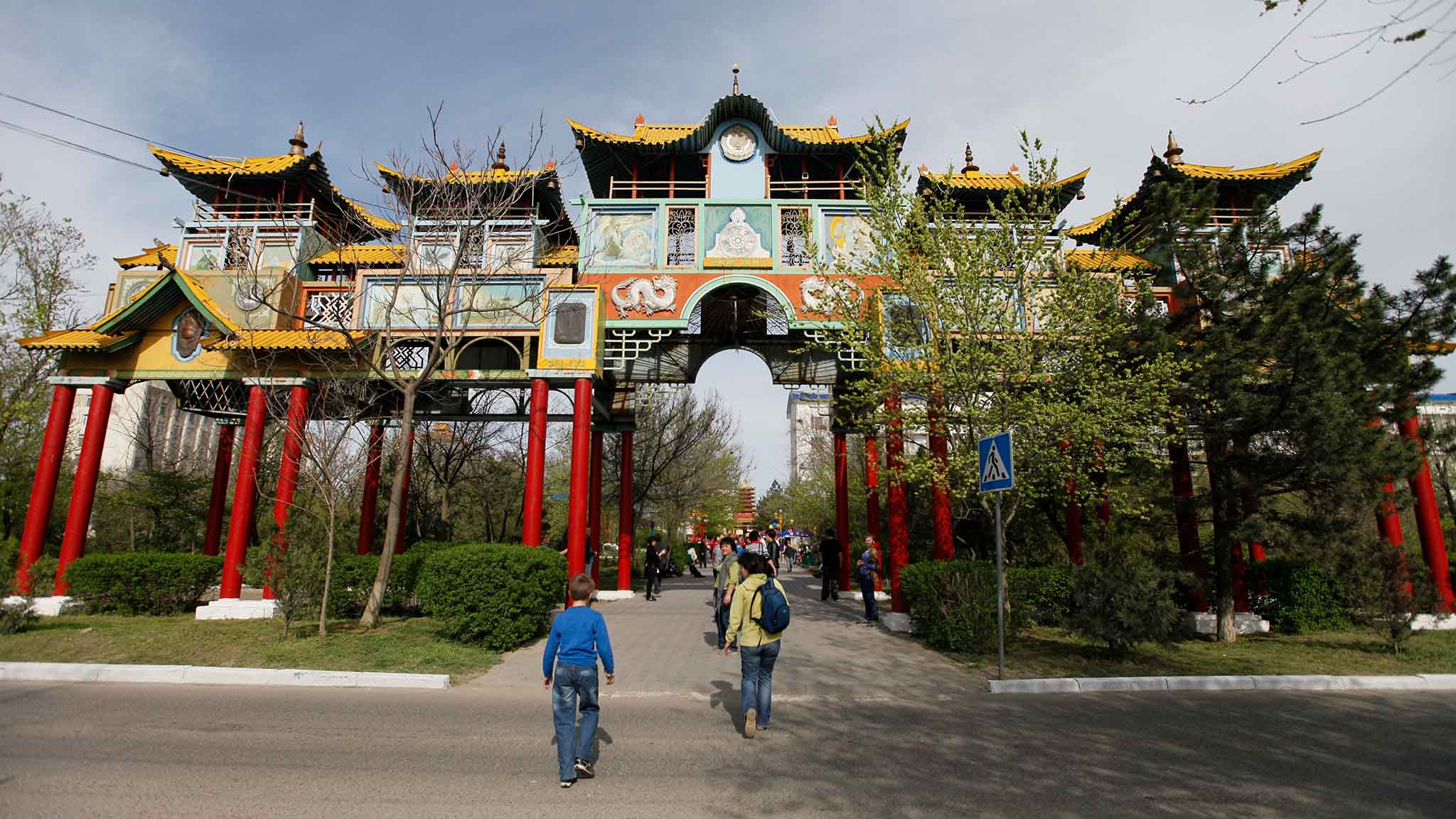 Золотые ворота (на калмыцком — Алтн босх) являются одним из архитектурных символов столицы Калмыкии. Это величественное буддийское сооружение возвышается в самом сердце города, на Аллее Героев, неподалеку от площади Ленина. Высота ворот достигает впечатляющих 15 метров. Главная особенность — это 28 картин, украшающих фасад Золотых ворот. Каждая из них — это страница истории, рассказывающая как о далеком прошлом калмыцкого народа, так и о его современном пути развития. Художественные полотна создают уникальную галерею под открытым небом, где каждый может прикоснуться к культуре древнего народа.