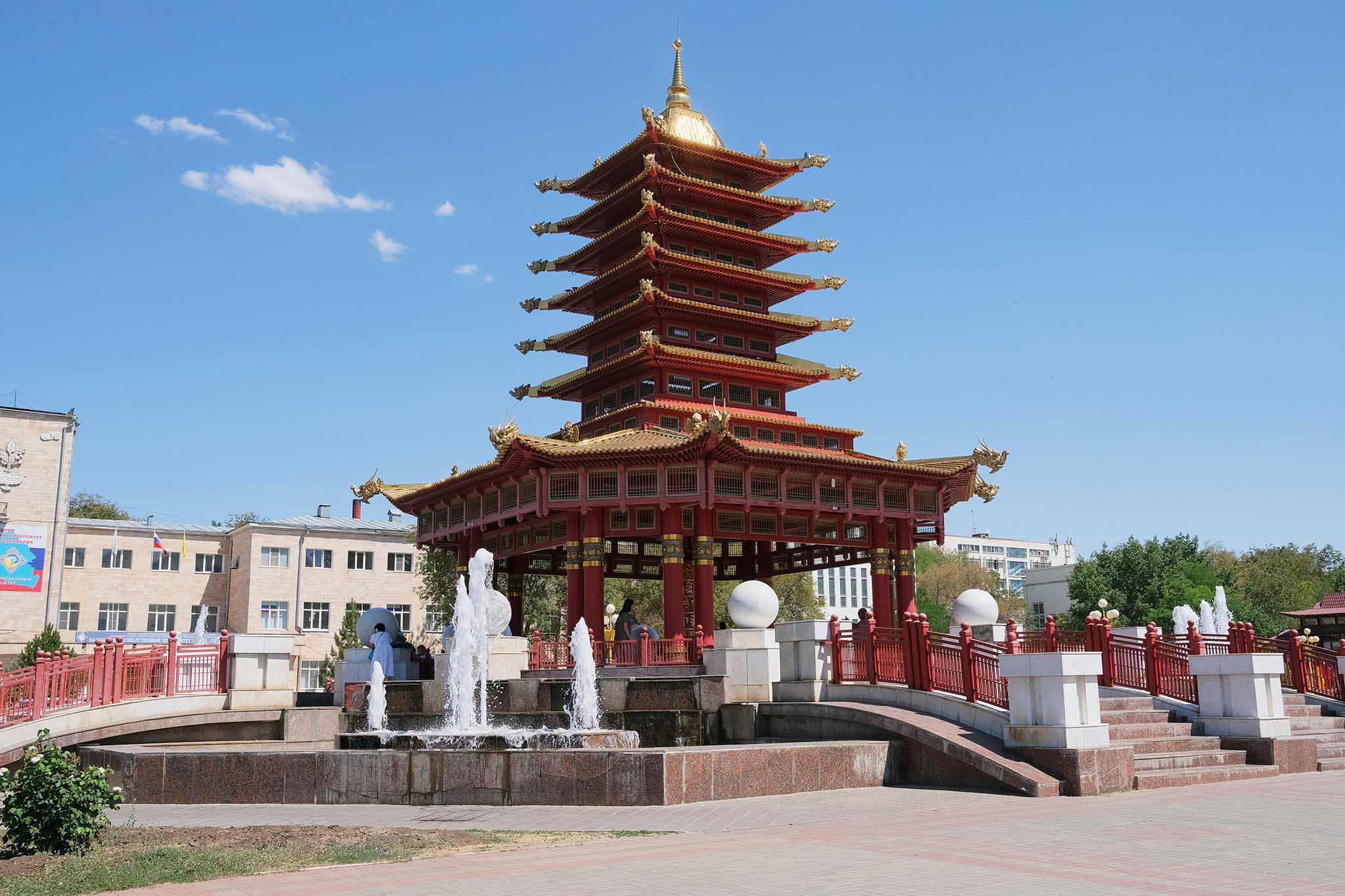 Пагода находится в центре Элисты на площади Ленина. 15-метровое сооружение появилось здесь в 2005 году, когда архитектор Ахмет Босчаев воплотил в жизнь этот проект. Название связано с семью буддами, которые, согласно религиозным представлениям буддистов, пришли в наш мир, символизируя мудрость и просветление.