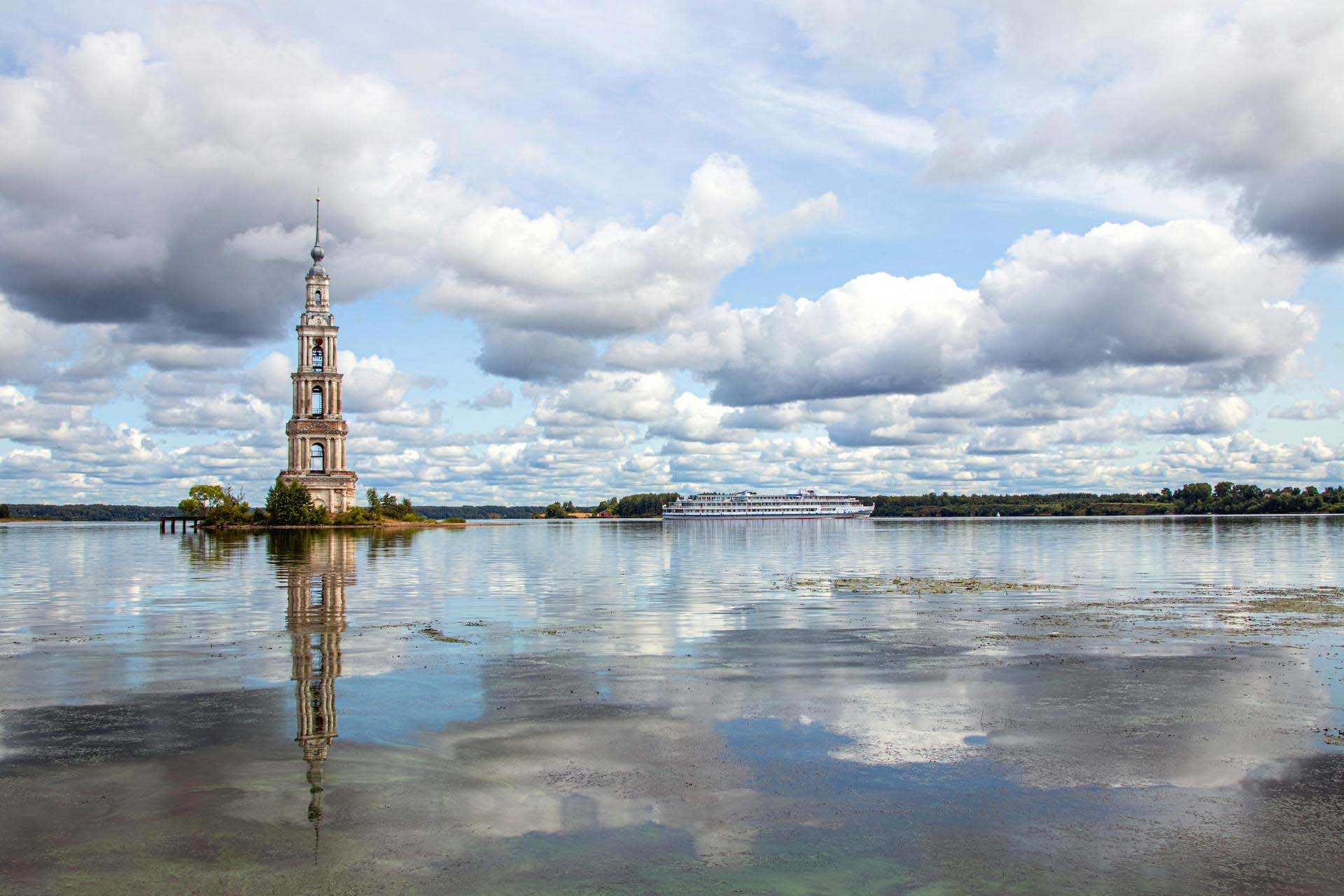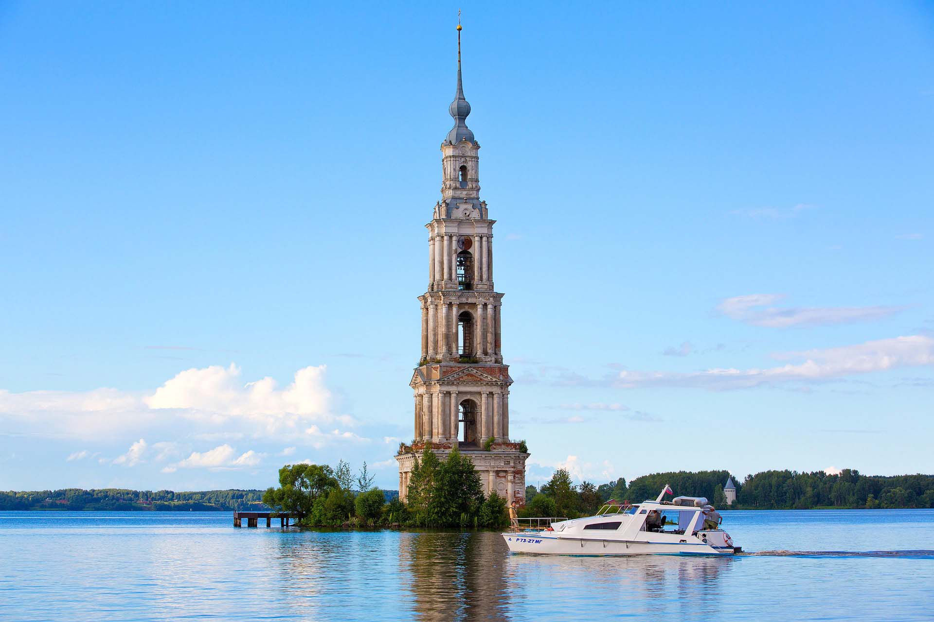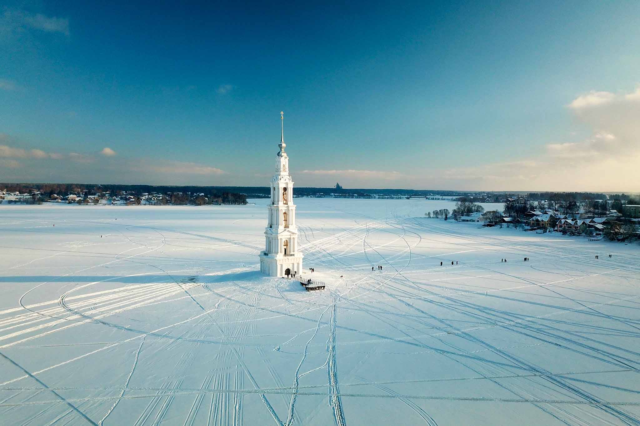 В России множество уютных старинных городков с богатым прошлым, но Калязин – уникален. И не только героической историей (хотя одна победа над польско-литовскими интервентами чего стоит), но, конечно, памятником славным и страшным стройкам СССР. Это 75-метровая колокольня бывшего Никольского собора, возвышающаяся посреди Волги. Практически все, что осталось от старинной части города, наибольшую часть которого затопили, когда в 1930-х начали строить Угличское водохранилище. Недаром Калязин еще называют Волжской Атлантидой…