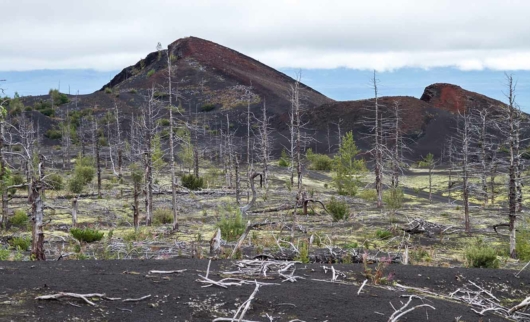 В итоге растительность вблизи вулкана оказалась выжженной, включая целый лес. Это создало по-настоящему апокалиптическую картину — одинокие деревья с обломанными от взрывов ветками стоят на усыпанной черным пеплом земле. Кто-то сравнивает такой пейзаж с Мордором из толкиеновского Средиземья, кто-то — с инопланетными видами, но Мертвый лес привлекает сюда многих туристов.