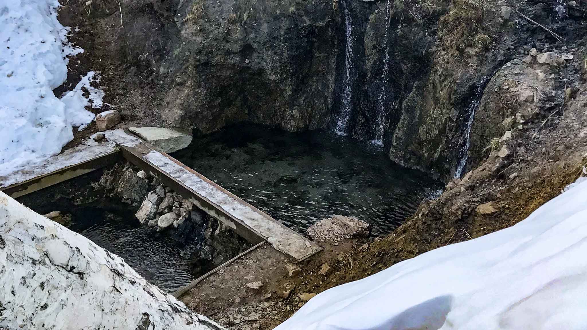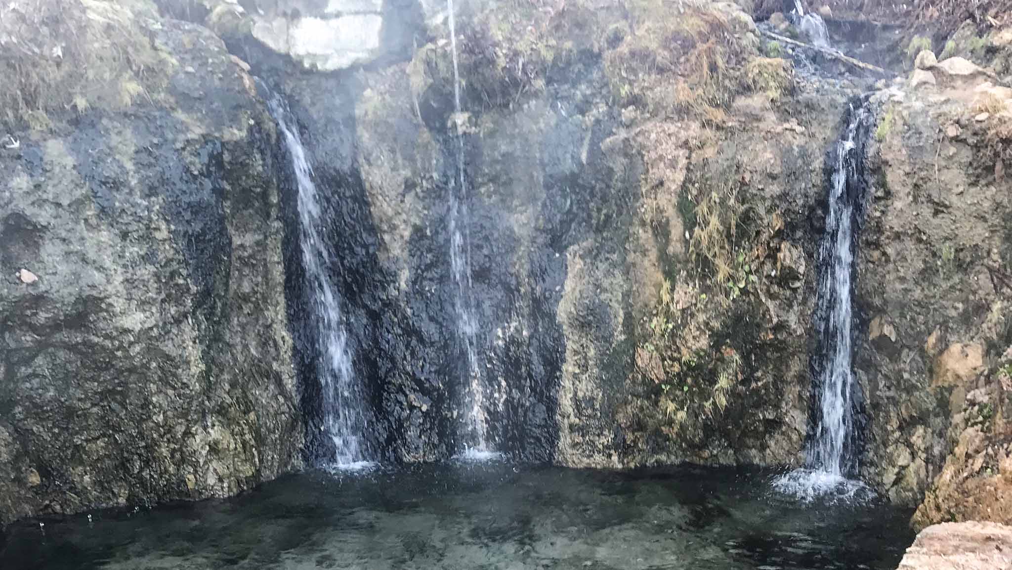 В юго-восточной части вулкана, когда едешь по перевалу, есть геотермальные источники. Они образуют природные мини-бассейны. Правда, карабкаться к ним — то еще «развлечение». Подъем очень крутой, и для того, чтобы было проще подниматься, висит покрытый зеленой краской толстый канат. Цепляешься за него, чтобы не сорваться, — и ползешь вверх или вниз.