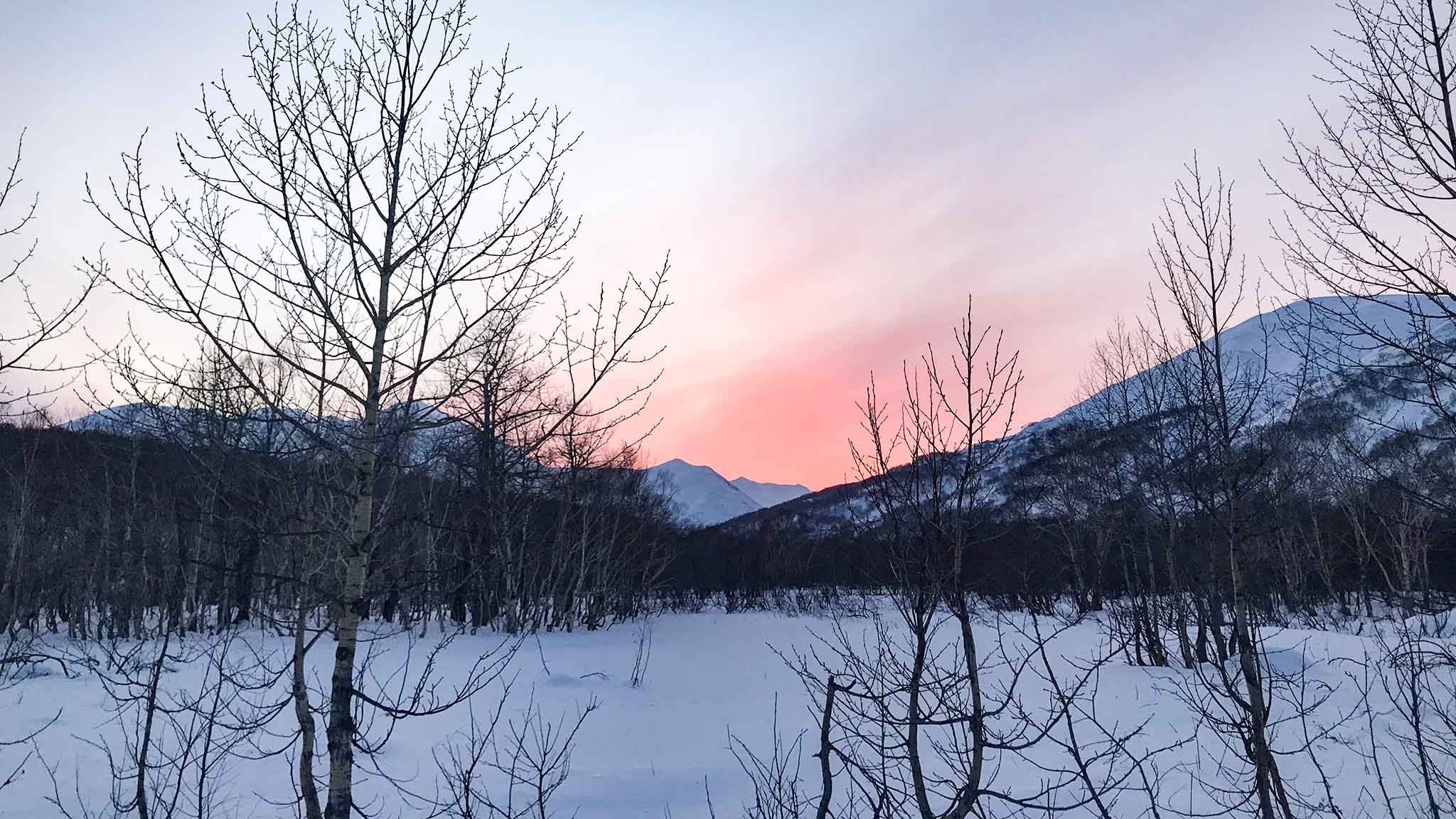 Вилючинский перевал — уникальное место, оттуда видны при хорошей погоде сразу девять вулканов Камчатского края! И в первую очередь — самый красивый, как на картинке, с правильным конусом, Вилючинский. Автомобильный перевал высотой от 825 до 1000 метров на юго-западе от Петропавловска-Камчатского, проходит по территории Южно-Камчатского природного парка. Дорога вьется серпантином. Зимой, в сумерки, здесь было бы легко ухнуть в пропасть, если бы не стебли китайского бамбука. Они воткнуты, как лыжные палки, в снег. В сумерки, а если еще и пурга, водители по ним ориентируются: сюда нельзя — обрыв. Главная цель путешествия — вершина перевала, оттуда можно увидеть Вилючинский вулкан. Его невероятно красивая вершина всегда покрыта снегом. Высота в самой верхней точке — 2175 метров. Одни вулканологи считают вулкан потухшим, другие — активным. Последний раз он извергался в 1775 году. Однако те, кто добирается до вершины, замечают, что она чуть-чуть дымится — это выходят пар и газ. Но до полноценного извержения далеко. Со склонов Вилючинского перевала обожают кататься сноубордисты. Благо, есть выбор. И кулуары (в переводе с языка сноубордистов — ложбины, широкие вверху и узкие внизу) и зоны, покрытые камчатской березой. И крутые, и пологие.