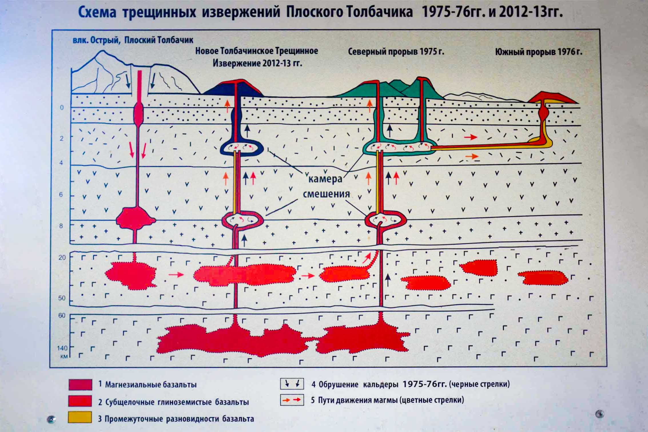 Особенно мощным было извержение в 1975 году — тогда изменился рельеф вокруг Плоского Толбачика, а остатки раскаленной докрасна лавы под тонким слоем породы можно наблюдать и по сей день. Правда, они уже безвредны, поэтому от туристов сегодня нет отбоя.
