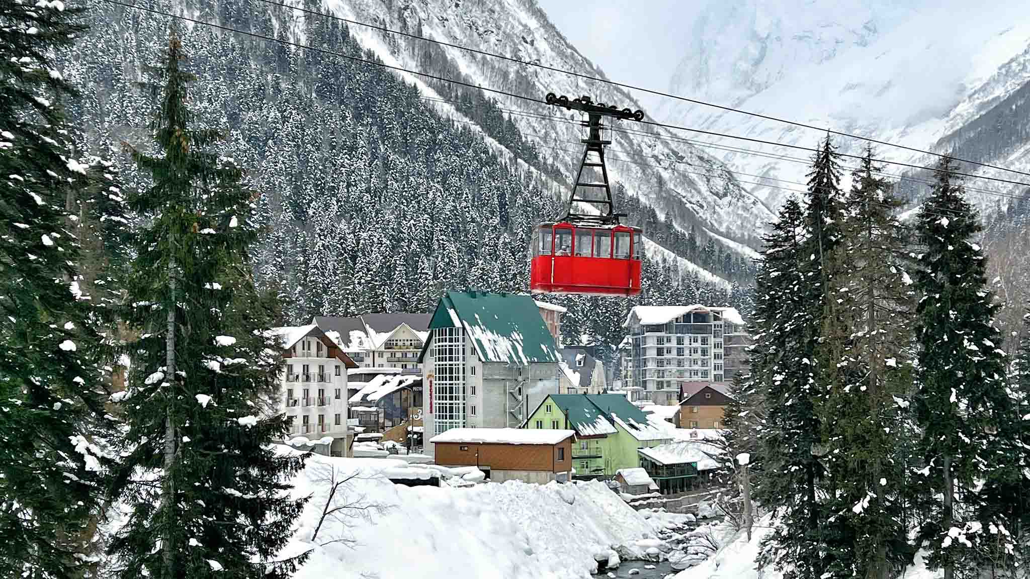 Домбай отличается от Архыза. Во-первых, пейзажами: курорт окружают выразительные снежные и скальные вершины, а граница леса заканчивается выше 2 тысяч метров. Во-вторых, подъемниками: канатные дороги не имеют централизованного ски-пасса, поэтому лыжникам надо покупать абонемент на основную синюю трассу, либо несколько карточек. В-третьих, трассами: их протяженность меньше 25 км, но по отзывам тех, кто тут катался, спуски Домбая более захватывающие.