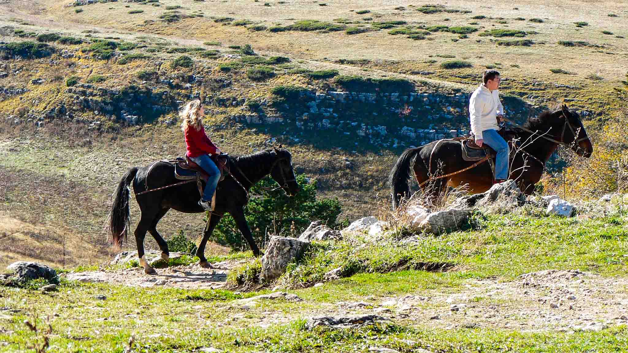 Альпийские луга Домбая и Архыза обычно зацветают в середине-конце месяца. Это самое подходящее время для конной прогулки. Можно заказать двухчасовую — до Лунной поляны (Архыз) или трехдневный поход на лошадях через Архызское седло на Озеро Любви (Белкау-Кель). Очень интересный конный поход на перевал Гумбаши. С вершины вы увидите завораживающую панораму цепей гор и долин рек. Там получаются волшебные фотографии.