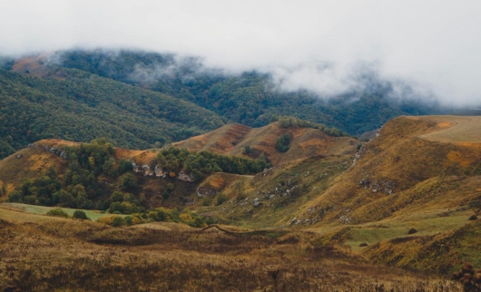 Лесная мозаика долины красивее всего выглядит в сезон цветения и перед листопадом. В разное время года пейзаж перевала Гумбаши сильно меняется, впечатляя туристов и всех, кто оказался в долине проездом.