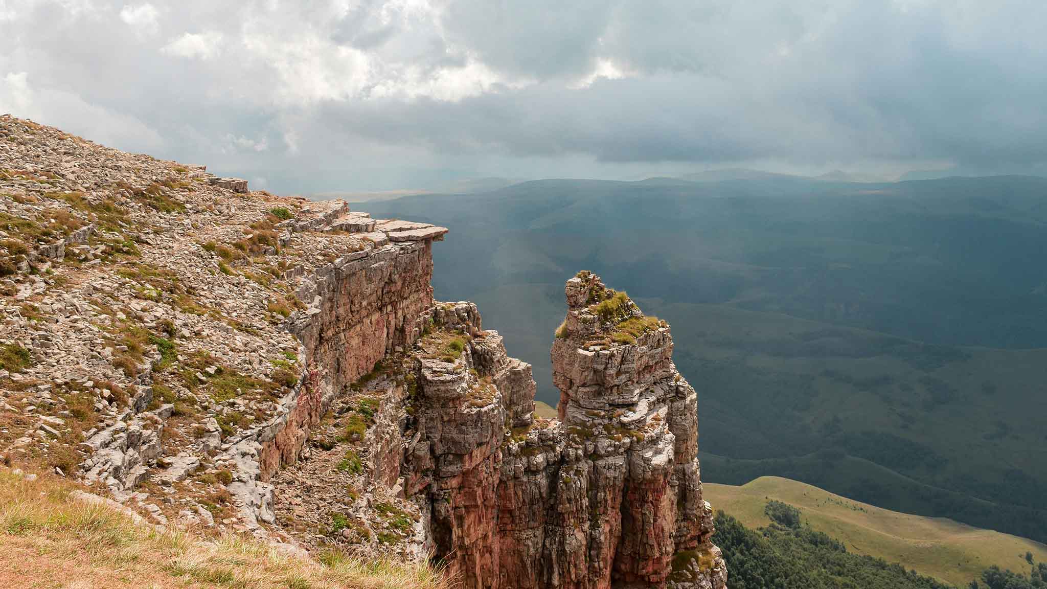 Величественный Эльбрус с севера лучше всего наблюдать с большого горного плато Бермамыт. Отсюда огромная двуглавая гора видна, как на ладони. Одна из самых красивых обзорных площадок Карачаево-Черкесии расположена южнее города-курорта Кисловодск. Название «Бермамыт» переводится как «кривое колено». Это не случайно – здесь живописный ландшафт изобилует отвесными скалами и причудливыми ущельями. В самой высокой точке Бермамыт достигает 2592 м. Наверху вас ждет впечатляющая панорама Главного Кавказского хребта и чистейший горный воздух.