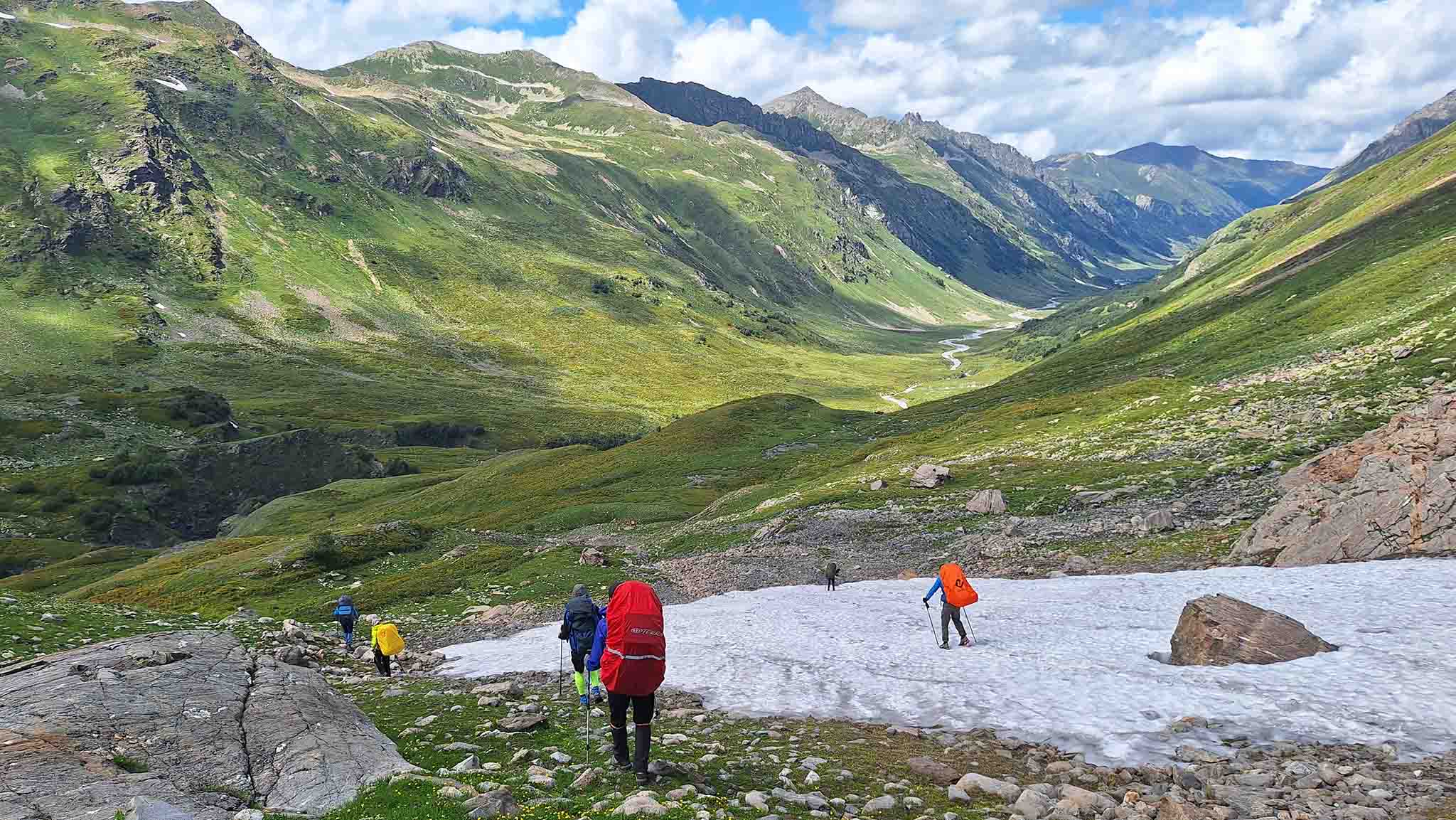 Самое время для походов: расцвели альпийские луга, водопады как никогда полноводные, горные озера освободились ото льда. Это может быть однодневный треккинг по ущелью Домбай-Ульген до 12-метровых Чухчурских водопадов.