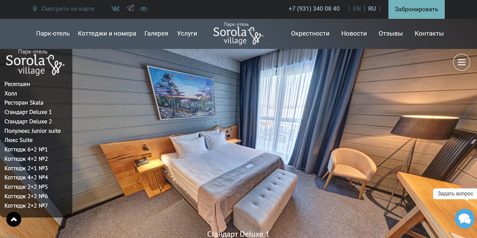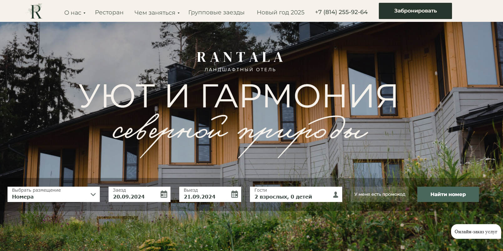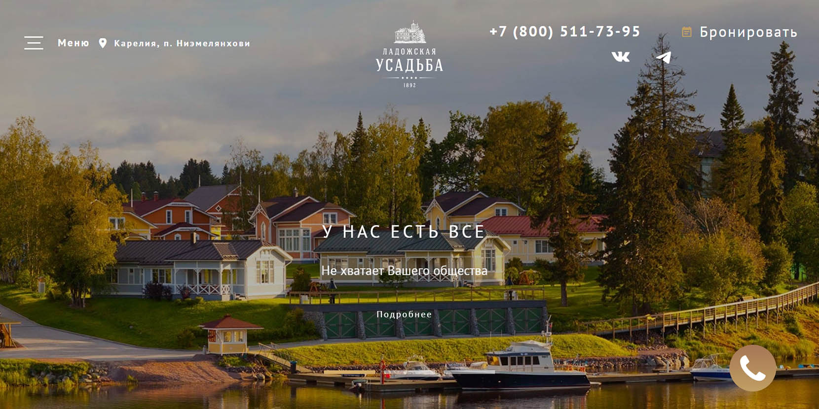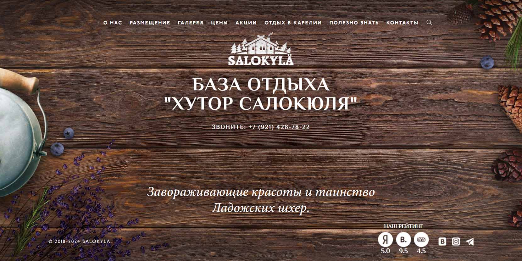 Загородная гостиница расположилась среди хвойных лесов на берегу самого большого европейского озера — Ладоги. В комплексе 18 отдельных коттеджей, оборудованных мебелью, бытовой техникой, санузлом, кухней и террасой. На территории есть ресторан, развлекательный и банный комплексы, детская площадка и зона для пикника. Отсюда можно легко и быстро добраться до таких знаковых достопримечательностей, как Валаам и Ладожские шхеры.
