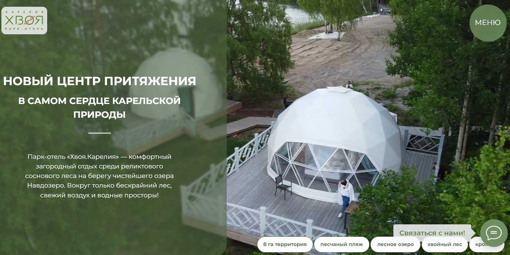 Парк-отель находится на берегу Навдозера, недалеко от главных достопримечательностей Карелии. Гостям предлагают поселиться в шале, купольных домиках с панорамными окнами или стандартных номерах с террасой. На территории работает собственный ресторан, где за дополнительную плату можно выбрать полноценное питание: завтрак, обед и ужин из блюд традиционной карельской кухни. В отеле есть прокат велосипедов, лодок, сапов. Доступны экскурсионные программы и другие развлечения.