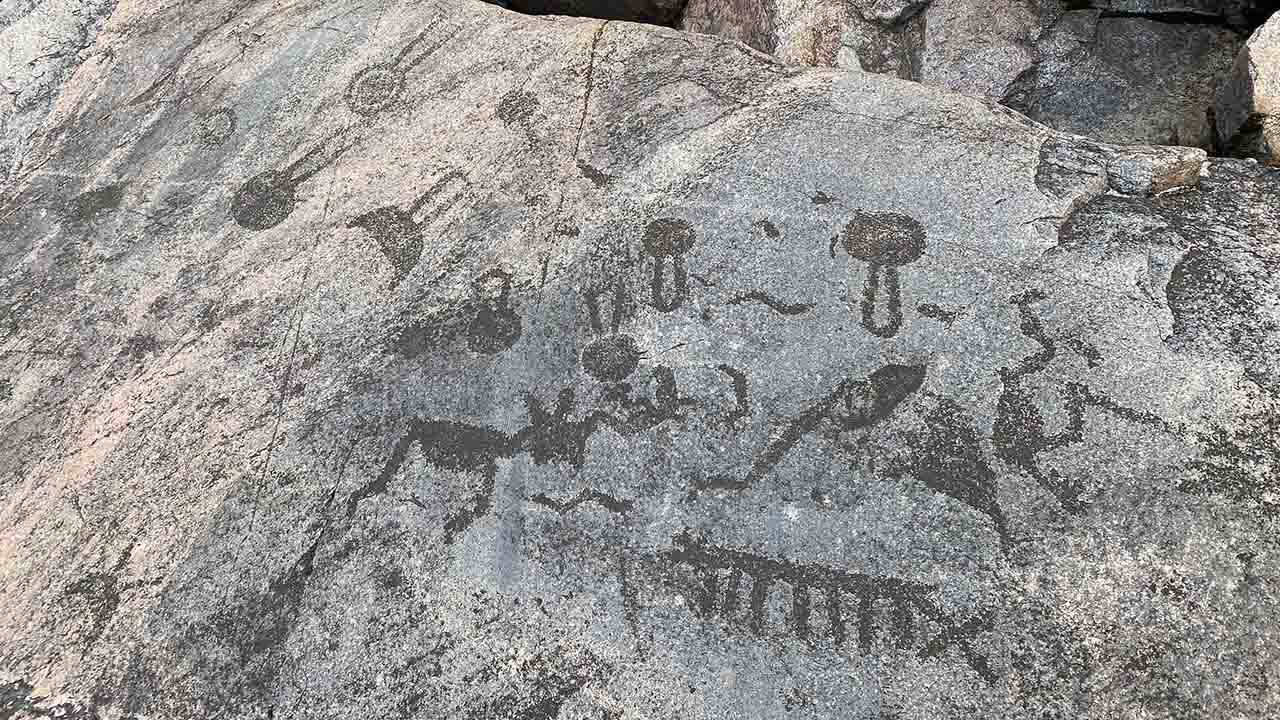 Эта крупнейшая в республике группа наскальных рисунков находится в Пудожском районе Карелии на восточном берегу Онежского озера. Лучшее время для посещения — с мая по сентябрь. Самостоятельно пробираться к наскальным рисункам тяжело, поэтому стоит нанимать проводников из местных жителей, которые хорошо здесь ориентируются.