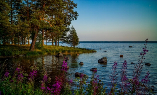 Онежское озеро, расположенное в северо-западной части России на территории Карелии, Ленинградской и Вологодской областей, — второе по площади в Европе и третье в России среди пресноводных. Его береговая линия протянулась на 1810 км, а глубина достигает 120 м. Онежское озеро соединяется с Ладожским по реке Свирь.