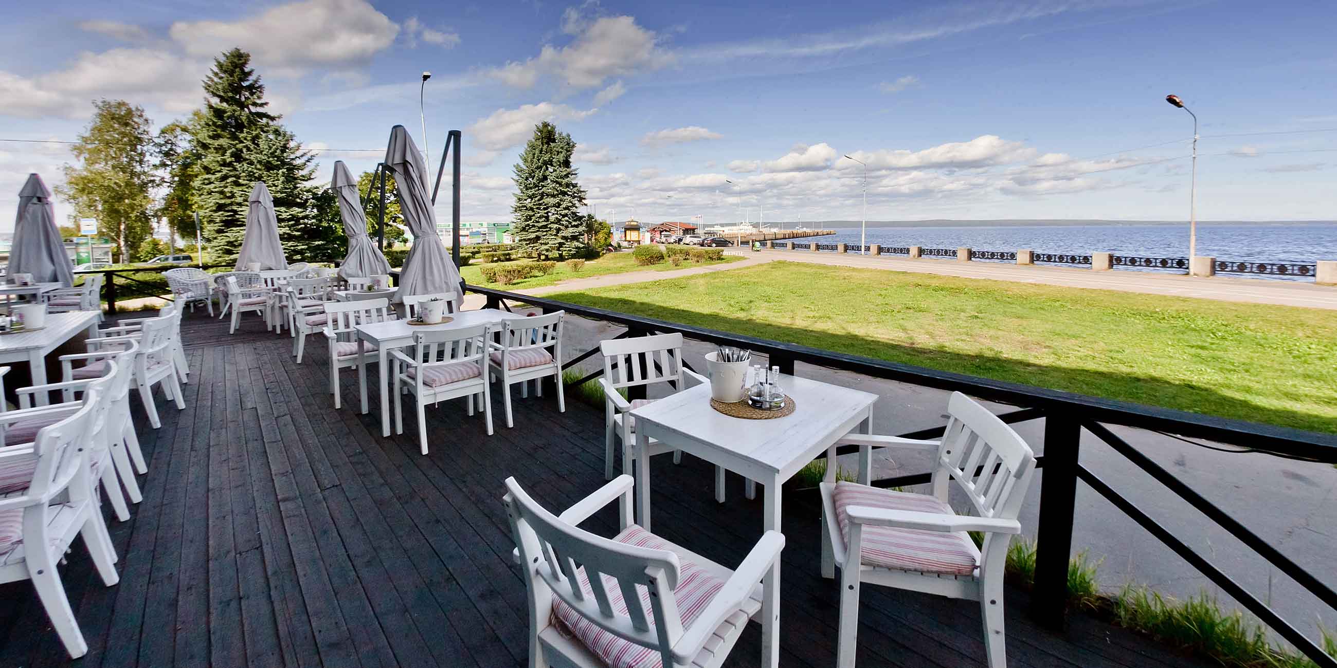 Гордость отеля — панорамный ресторан «Фрегат» с красивой летней верандой. В первом рыбном ресторане Карелии можно попробовать национальную карельскую кухню, а также огромное количество блюд из местной рыбы. Гастрономическое знакомство с Карелией оставит самые вкусные впечатления о поездке.