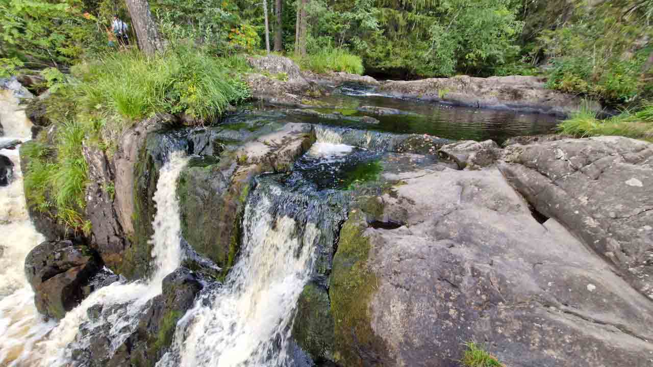 А этот водопад считается одним из самых тихих в Карелии. Спокойные потоки стекают с его 5-ти каскадов. Но место в национальном парке «Паанаярви», где укрылся водопад, по-настоящему волшебно. Его изображал на своих полотнах финский художник Аксели Гален-Каллела. «Сосновый» — так звучит его название в переводе на русский язык. Неторопливо течет он в окружении сосен, а вода в его потоках прогревается достаточно, чтобы в летний денек можно было здесь даже искупаться.