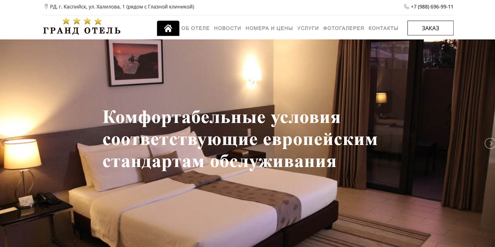 Гостиница находится в центре Каспийска. Рядом море, а также вся необходимая инфраструктура: развлекательные и торговые центры, городской парк, остановки общественного транспорта, музеи и так далее. Номера здесь выполнены в современном стиле. Можно выбрать стандартные, супериоры, полулюксы, люксы. Во всех своя ванная комната, кондиционер, ТВ, чайник. При отеле открыт ресторан кавказской и европейской кухни. Для автомобилей предусмотрена парковка.