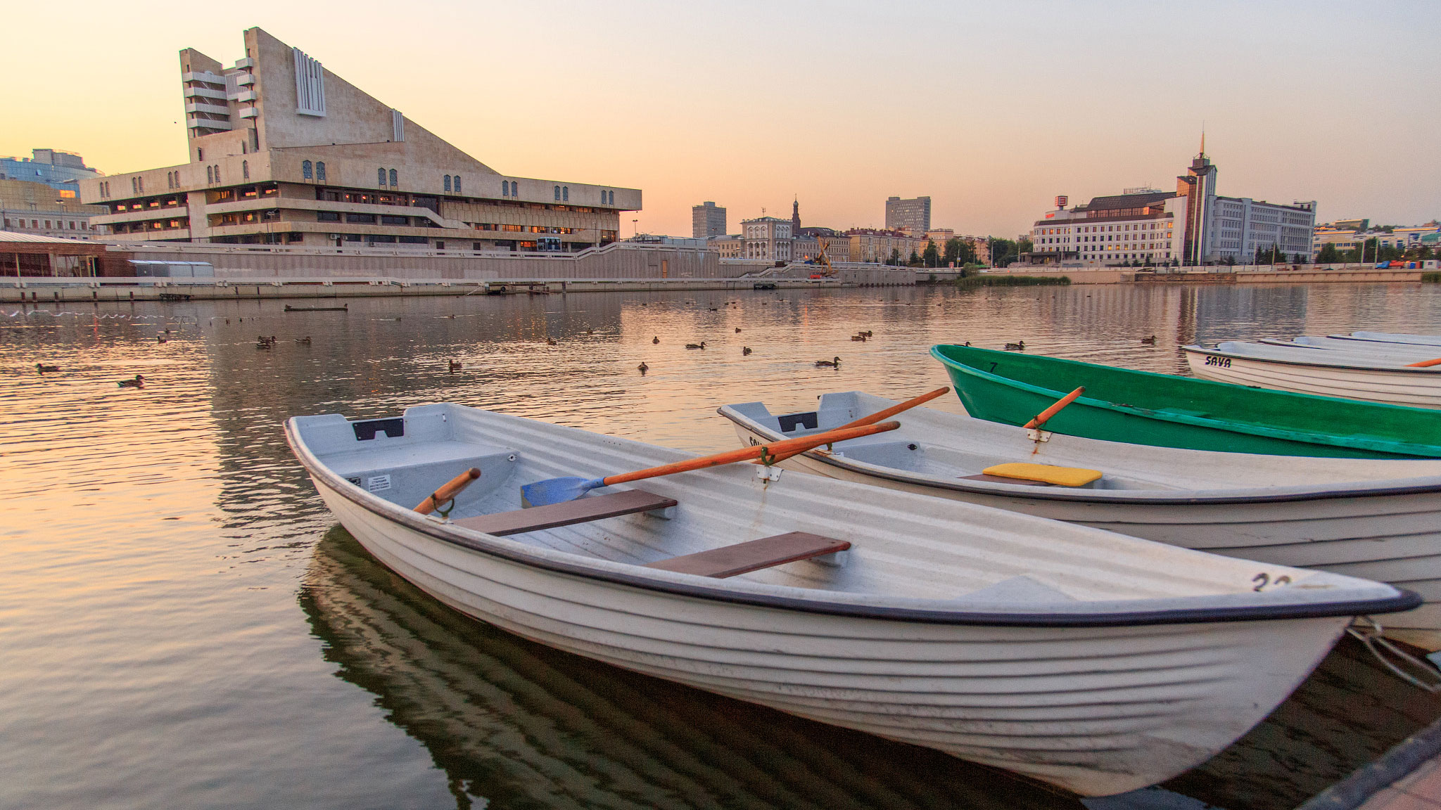 Прогулку по достопримечательностями Старо-Татарской слободы начнем с набережной озера Кабан. Отсюда открываются интересные панорамы противоположного берега Казани и красивый вид на драмтеатр Камала.
