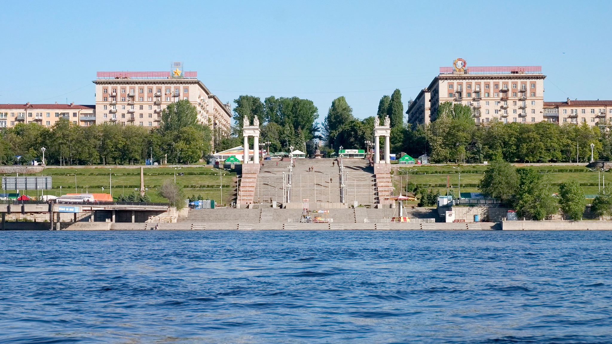 В Волгоград теплоходы приходят в полдень или немного позже. Остановка — 4 часа. Вы успеете побывать на обзорной экскурсии по городу. Его центр отличается от Самары и Саратова, ведь Волгоград был почти полностью разрушен во время войны и отстроен заново. Это широкие улицы, красивые здания сталинской архитектуры.