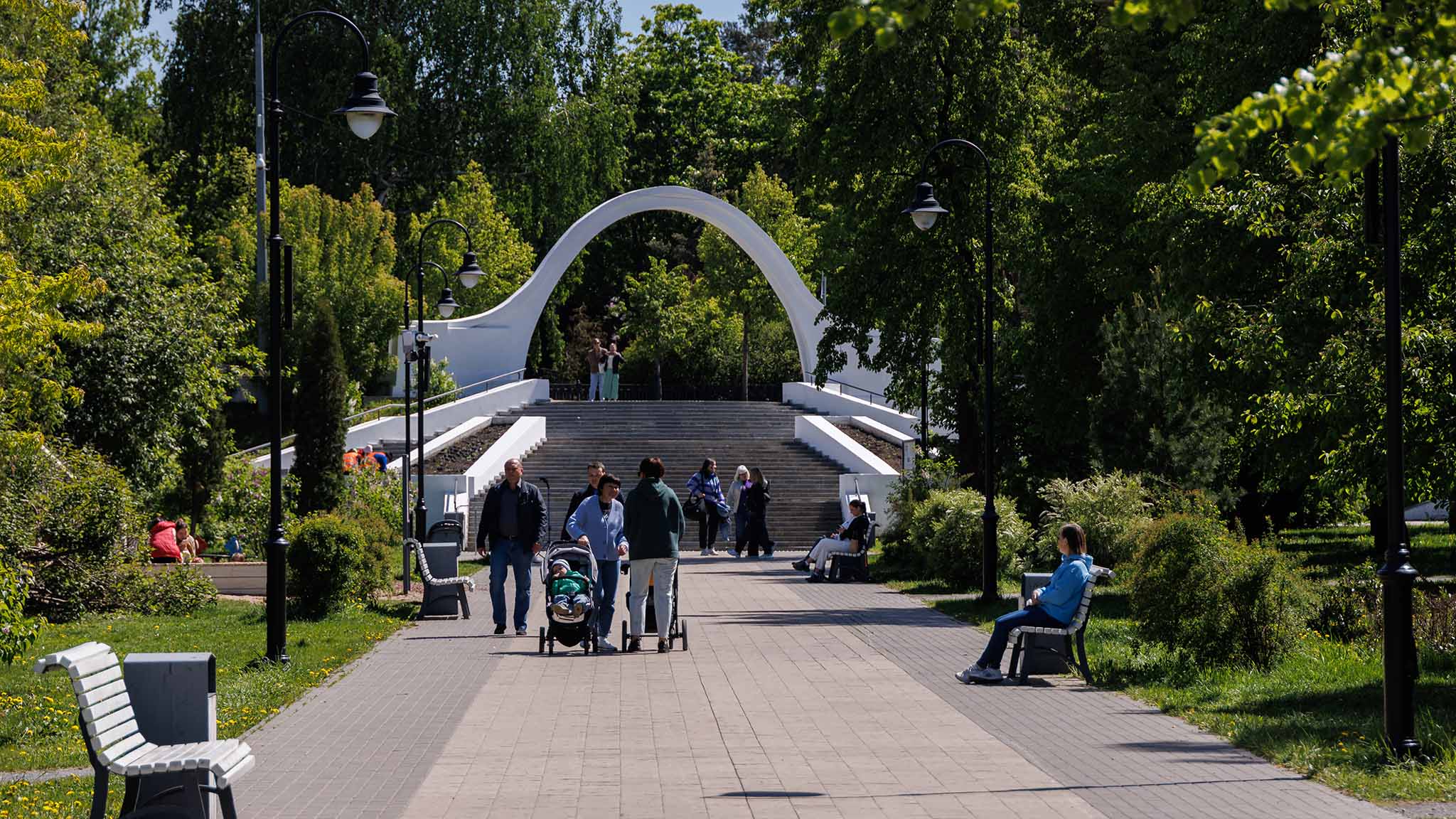Один из самых просторных парков города. Здесь каждый найдет занятие по душе: велопрогулки, пробежки или просто спокойный отдых на скамейках. Летом ближе к вечеру в парке включают светомузыкальный фонтан: струи воды «танцуют» в такт классическим мелодиям. Рядом — игровая площадка в виде паука-гиганта. Также есть спортплощадки и беседка, в которой собираются любители шахмат и шашек. Зимой парк украшают новогодней елкой и устанавливают ледяные горки.