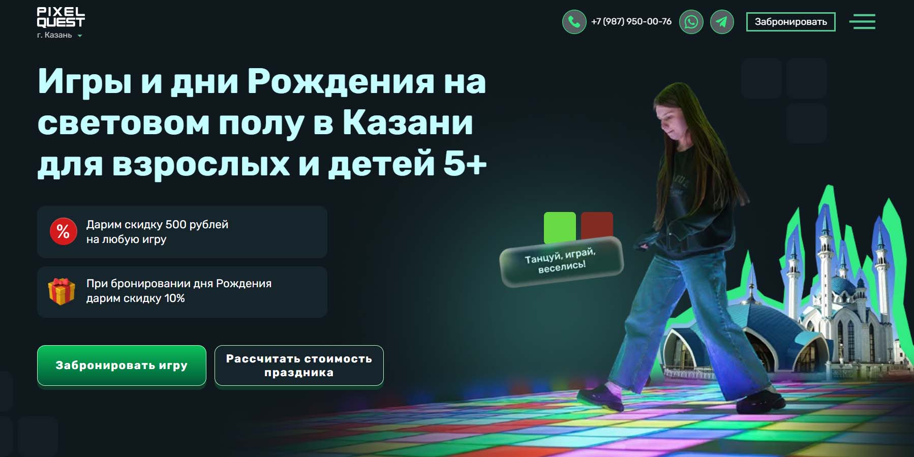 Представьте огромную световую площадку, где с вами «играет» пол: он реагирует на движения и предлагает более 50 захватывающих сценариев — от «Пола-лавы» до пиксель-дуэли. Развлечение подходит детям от 3 лет. Можно играть в одиночку, вдвоем или всей семьей.