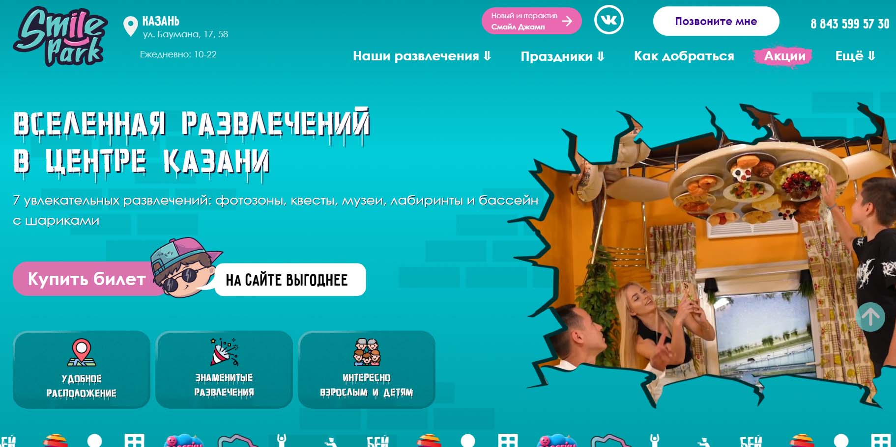 Волшебный уголок в Казани от знаменитой студии «Союзмультфильм». В парке ребята и их родители встретятся с героями советской анимации — Винни-Пухом, Карлсоном и многими другими персонажами. Желающие смогут поиграть в интерактивные игры и попробовать аттракционы с погружением в виртуальную реальность. Сюда часто приходят, чтобы отметить детские праздники. А еще здесь можно пройти увлекательный мастер-класс или освоить азы по созданию анимированного мультфильма.