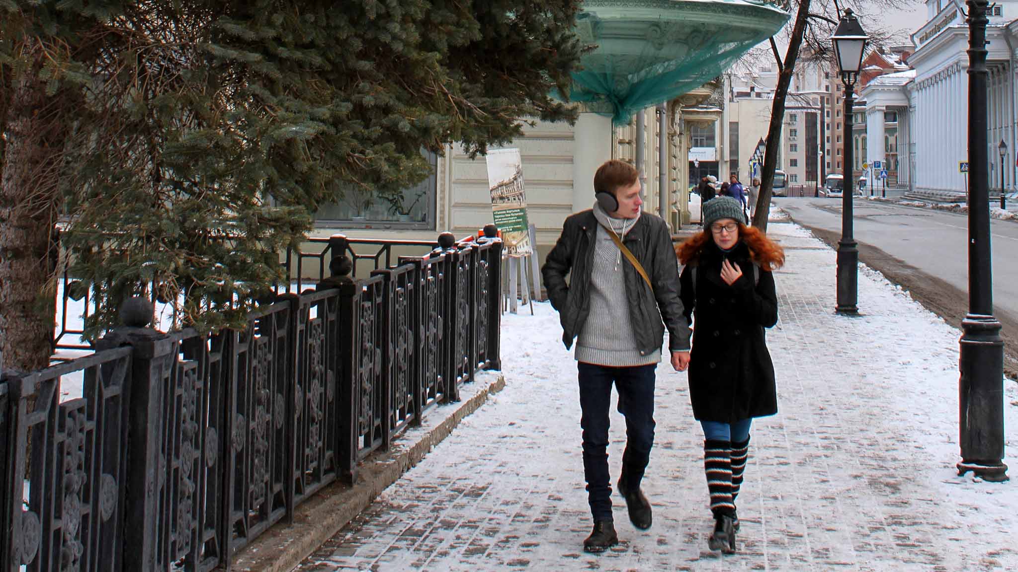 На новогодних каникулах «минус» в Казани не очень большой, но уверенный: до -8…-10℃ днем и до -14…-16℃ ночью. В январе в регионе повышается влажность. Это связано с циклонами. Вместе с тем может усиливаться ветер, иногда — до 14 м/с. В такой время холод переносить становится сложнее. Солнце радует нечасто, а вот снег идет довольно регулярно. Так что выходить гулять лучше в нескользящей зимней обуви и теплой куртке с капюшоном.