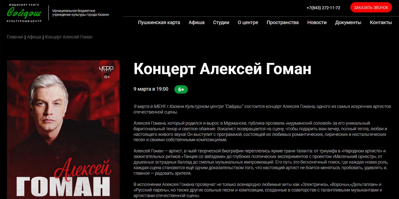 | Цена билета | 2000-5500 руб. |