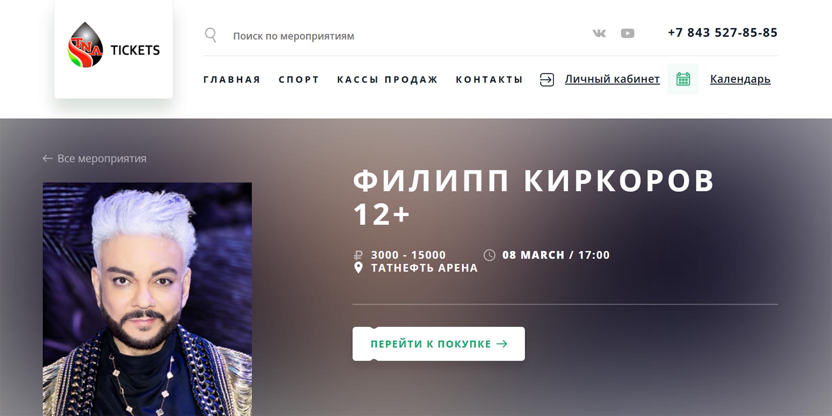 В Международный женский день король российской эстрады порадует поклонниц из Казани настоящим шоу. Организаторы обещают потрясающую сценографию, невероятные спецэффекты и, конечно же, неповторимые образы. Гости услышат проверенные временем хиты: «Зайка моя», «Снег», «Я за тебя умру», «Единственная моя» и другие.