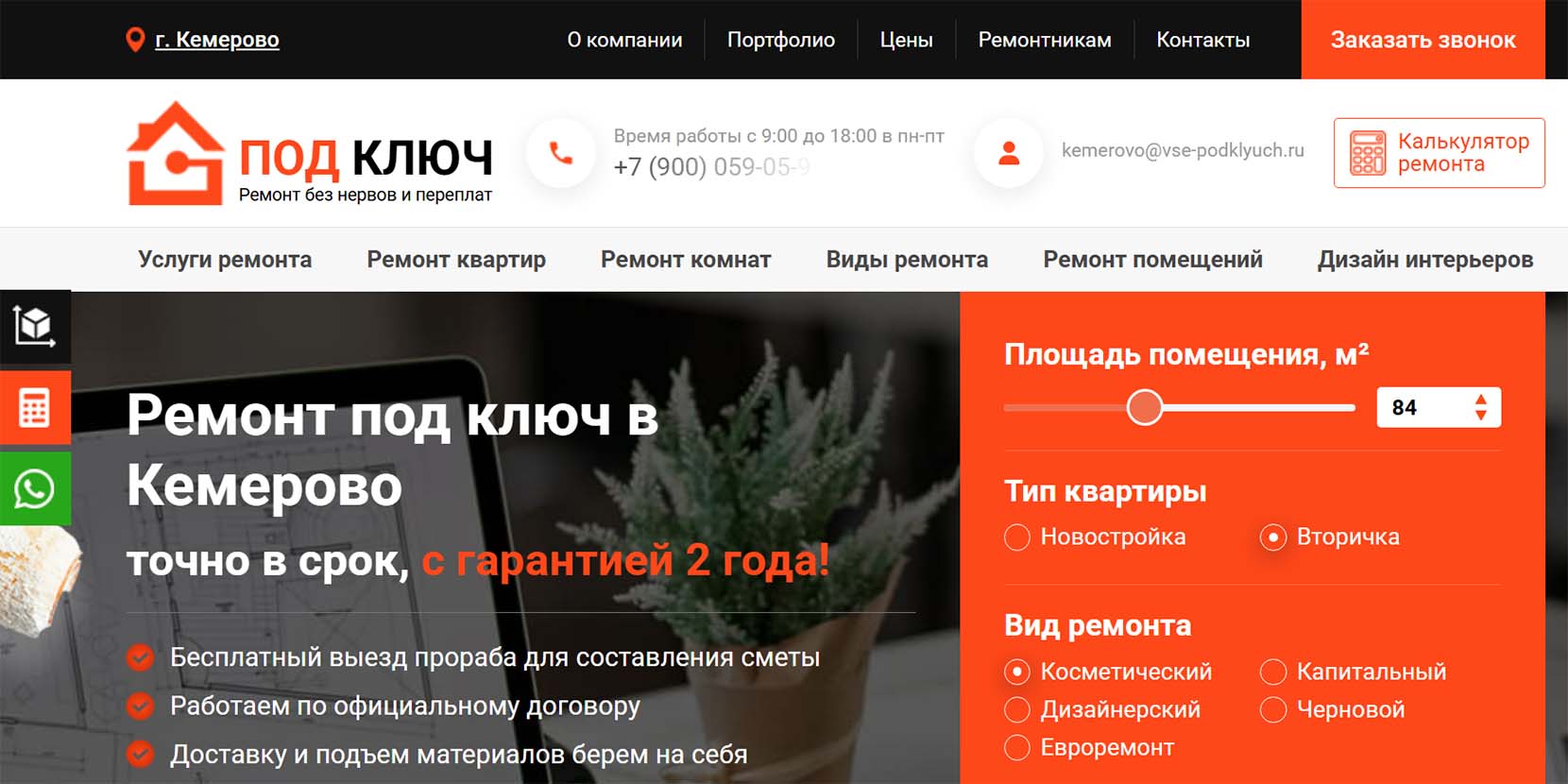 Компания предлагает несколько вариантов выполнения ремонта под ключ. Капитальный, косметический, дизайнерский или евроремонт — специалисты выполнят все необходимые работы исходя из пожеланий клиента. Участие заказчика в процессе сведено к минимуму. У компании собственный склад стройматериалов, налажено сотрудничество с крупными сетями и свой штат профильных специалистов. Это позволяет выполнить ремонт в соответствии с дизайн-проектом.