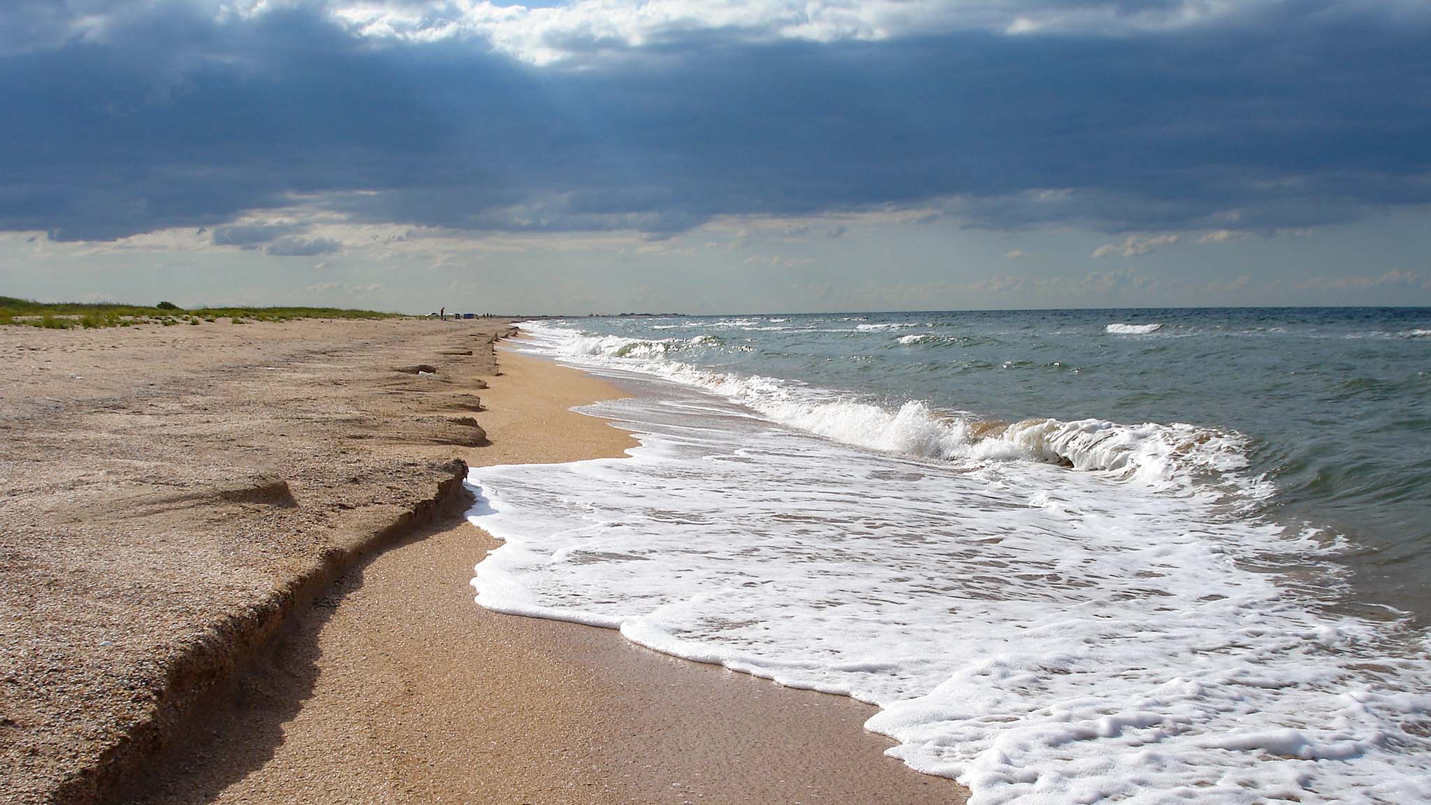 Если хочется чего-то необычного, обязательно стоит съездить на Арабатскую стрелку, ведь тут можно по очереди купаться то в почти горячей воде лиманов Сиваша, то в теплых, но часто неспокойных волнах Азовского моря. Пляжи на стрелке мелкогалечные, покрытые бесчисленным количеством выброшенных на берег морских раковин. Тянутся они более чем на 100 километров.