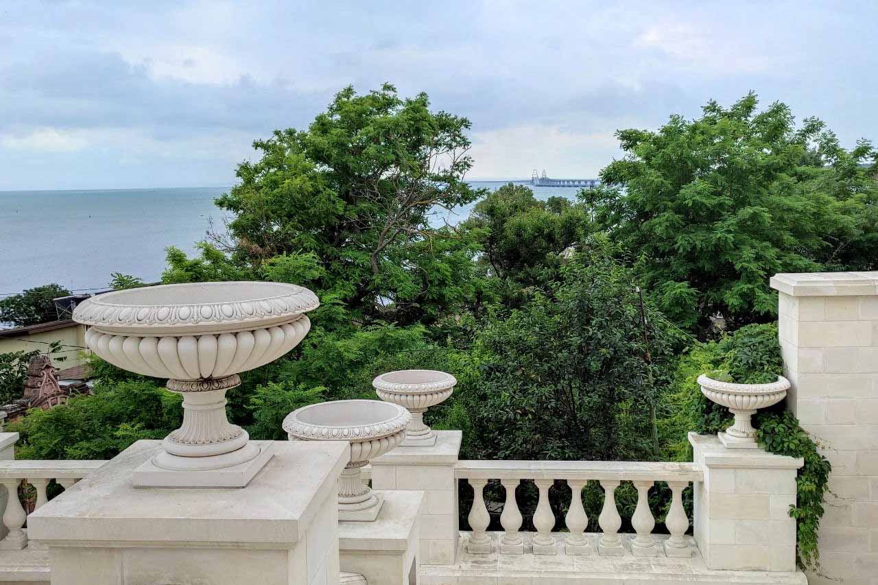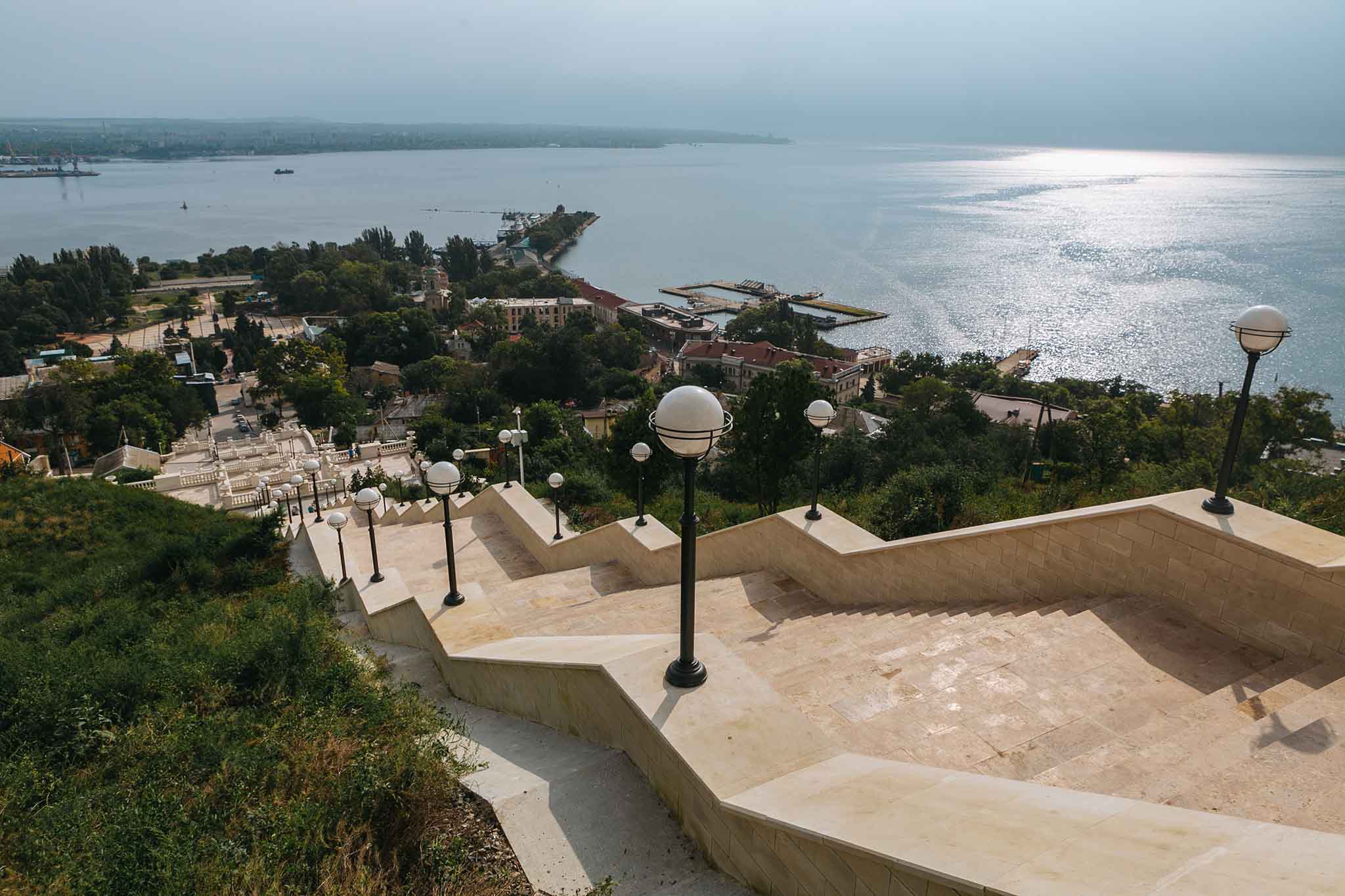 Полюбоваться можно и самой лестницей — ее балюстрадами, каменными украшениями в виде ваз и грифонов, и видами, которые с нее открываются. С лестницы можно обозревать великолепную панораму керченского порта и приморской части города, любоваться белоснежными судами, а с верхней точки отлично виден весь Керченский пролив и знаменитый Крымский мост.