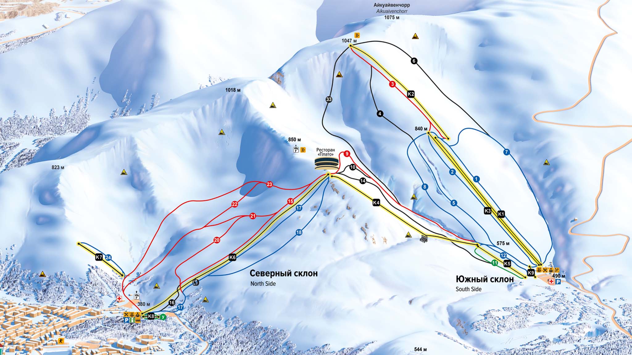Курорт расположен в пределах города Кировска Мурманской области на склонах горы Айкуайвенчорр горного массива Хибины. Интересно, что дойти до нижних станций подъемника можно пешком из центра города, а с высоты горы, как на ладони видны городские кварталы.