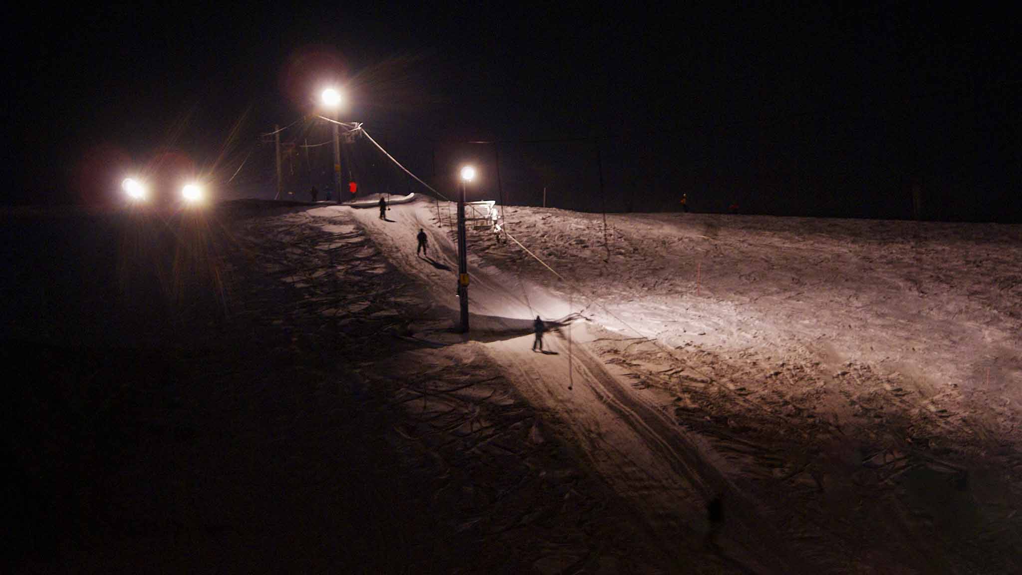 На основном склоне горы Кукисвумчорр работают три бугельных подъемника, на учебном — беби-лифт, это трос с крючками.