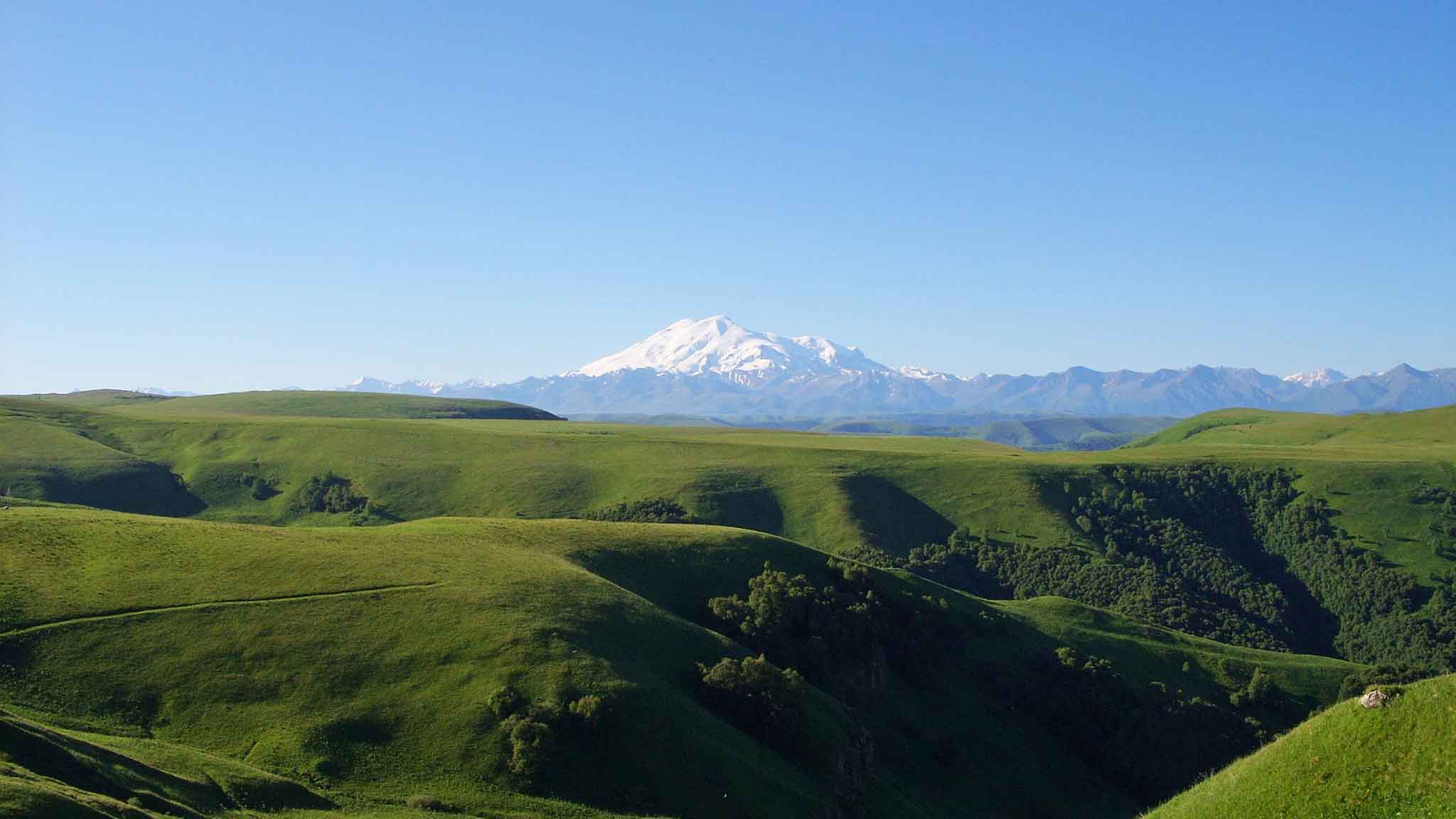 Со смотровой площадки Гумбаши отлично виден Кавказский хребет с его главным украшением — пятитысячником Эльбрусом. Пока будете ехать по перевалу, увидите потрясающе красивые луга. Тут даже есть целый «край лошадей», так туристы зовут пастбища, где организуют конные прогулки.