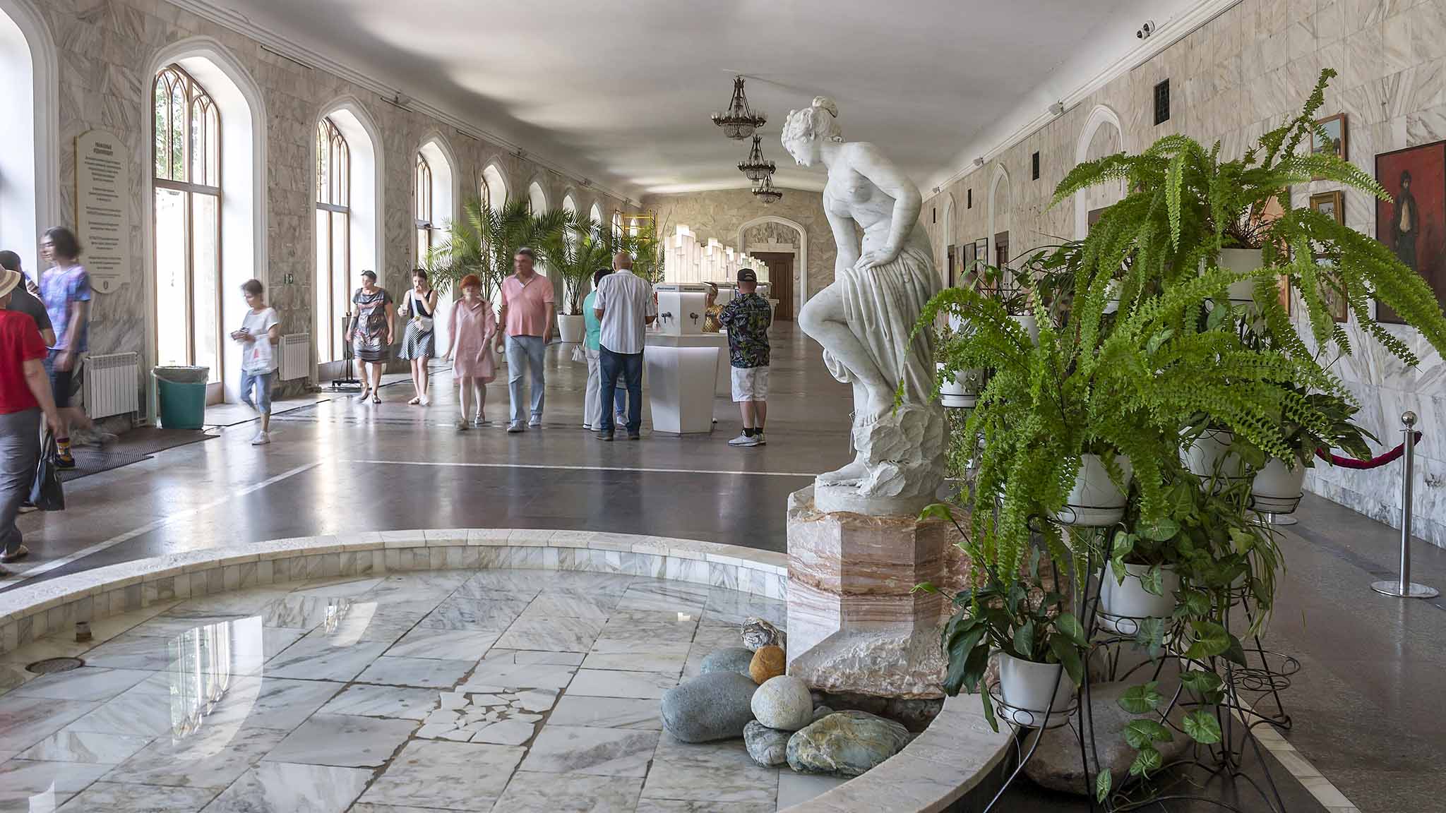 За годы мало что изменилось. В наши дни Нарзанная галерея — это по-прежнему настоящий «ключ города», что символично отражено в архитектуре здания. В среднем за день ее посещают 4 тысячи человек, так что за полгода выпивается больше шестисот тысяч литров нарзана. У входа в галерею начинаются экскурсии по Нижнему парку, а в саду у фонтана «Лягушки» почти не бывает свободных скамеек.
