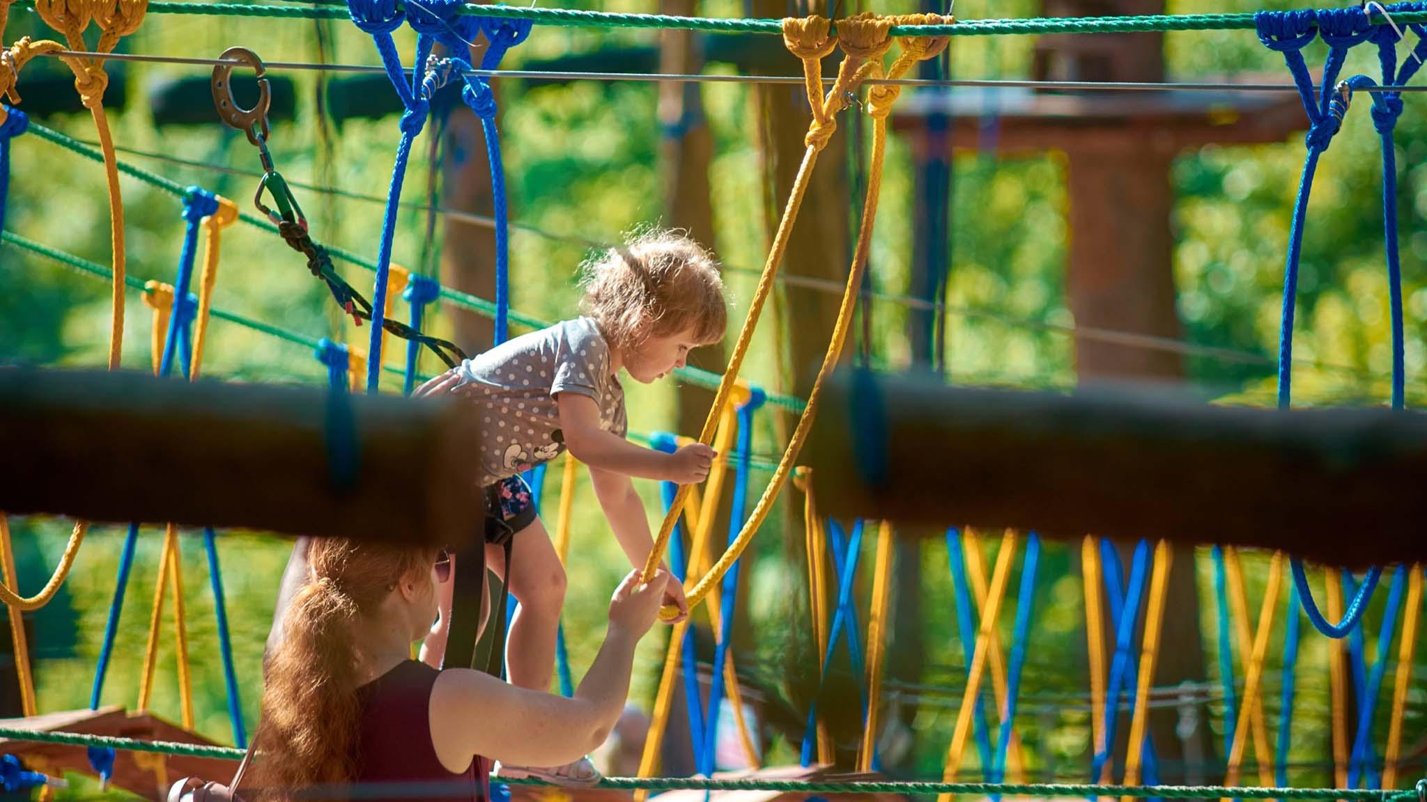 В Кисловодске есть небольшой, но весьма популярный дельфинарий, на представления сюда приезжают даже из других городов. На территории работает кафе и сувенирная лавка. В нацпарке открыт веревочный парк и обустроены детские площадки. В Визит-центре представлена коллекция из тысячи минералов, тут проводят необычные экскурсии с интерактивными инсталляциями, учат «управлять погодой» и «приручать ураганы». У Нарзанной галереи летом проходят веселые зарядки с детьми и взрослыми. От павильона «Храм воздуха» до Олимпийского комплекса в курортном парке поднимается однопролетная канатная дорога, на которой детям будет интересно прокатиться. Перепад высот — 250 метров, а длина дороги — 1743 метра.