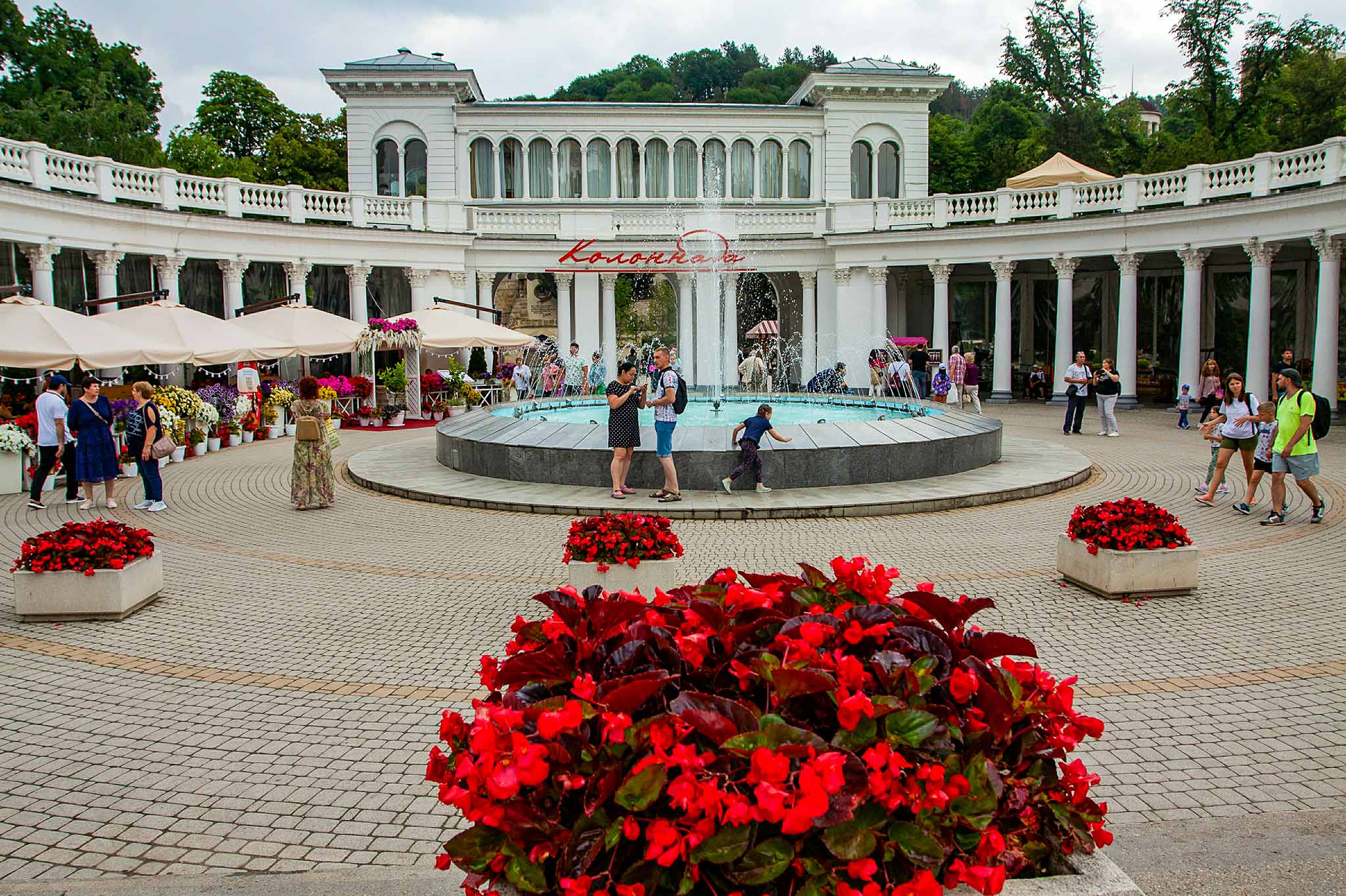 Больше 24 км тянутся дорожки терренкура — у роскошных клумб, через аллеи туй, вдоль набережной, на смотровую с видом на Эльбрус.