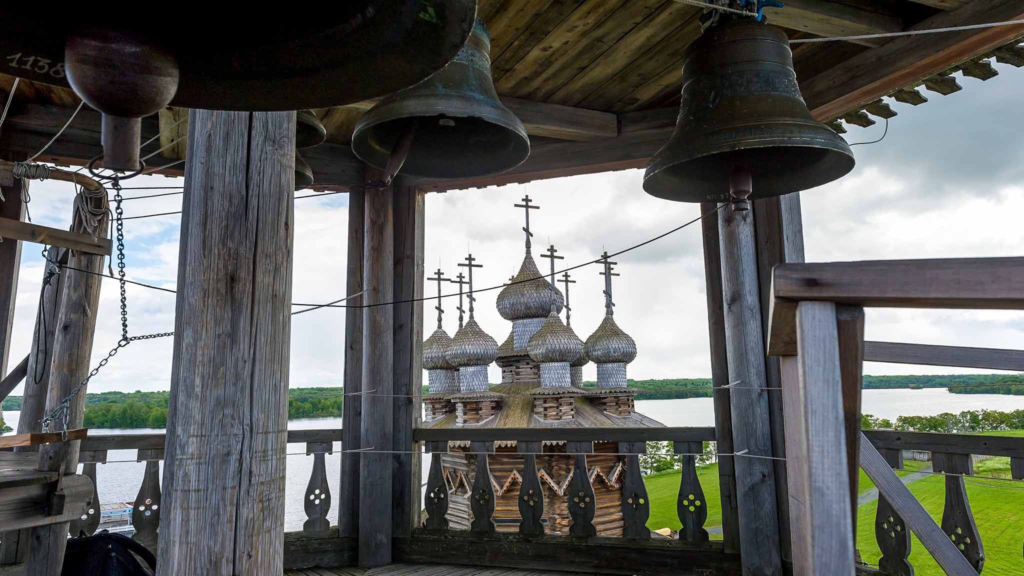 Великолепные виды на Кижский погост и гладь Онежского озера открываются с колокольни. Подняться на нее может любой желающий, купив специальный билет.