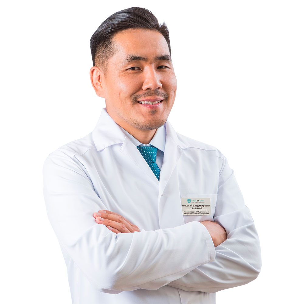 Намдаков Николай Владимирович — эксперт конкурса «Клиника года — 2021», один из ведущих специалистов страны и мира в области челюстно-лицевой хирургии и имплантологии. Владеет более чем 30 протоколами для реабилитации пациентов с полным отсутствием зубов. Один из немногих специалистов, кто проводит операции с применением скуловых имплантов для восстановления зубов на верхней челюсти, а также применяет метод базальной имплантации для решения сложных клинических случаев.