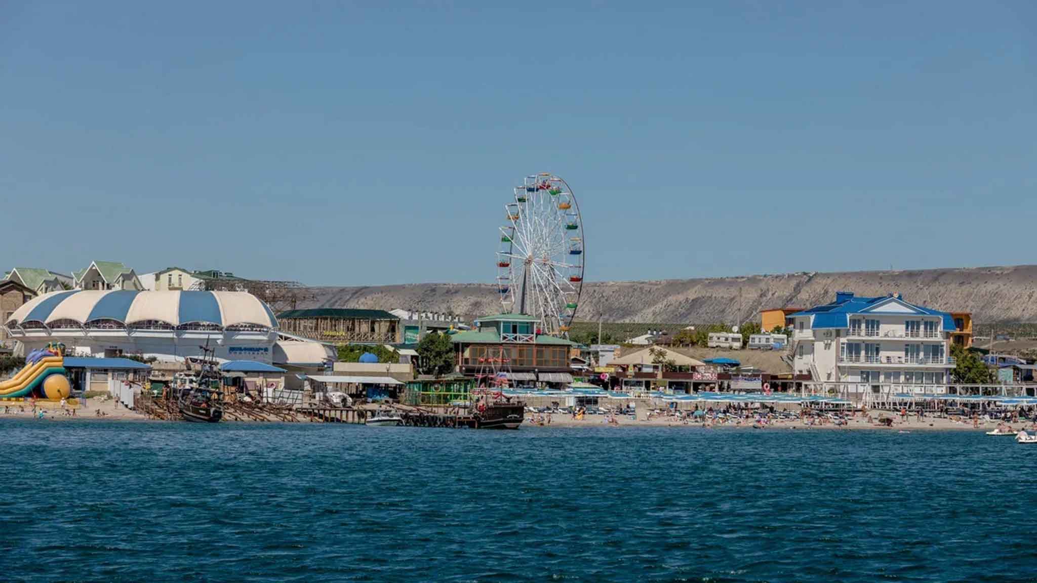 В высокий сезон здесь не протолкнуться — все выходят пройтись вдоль пляжей, купить сувениры из Крыма, пообедать в кафе с видом на море. Бизнес работает едва ли не круглосуточно, пытаясь заполучить туристов.