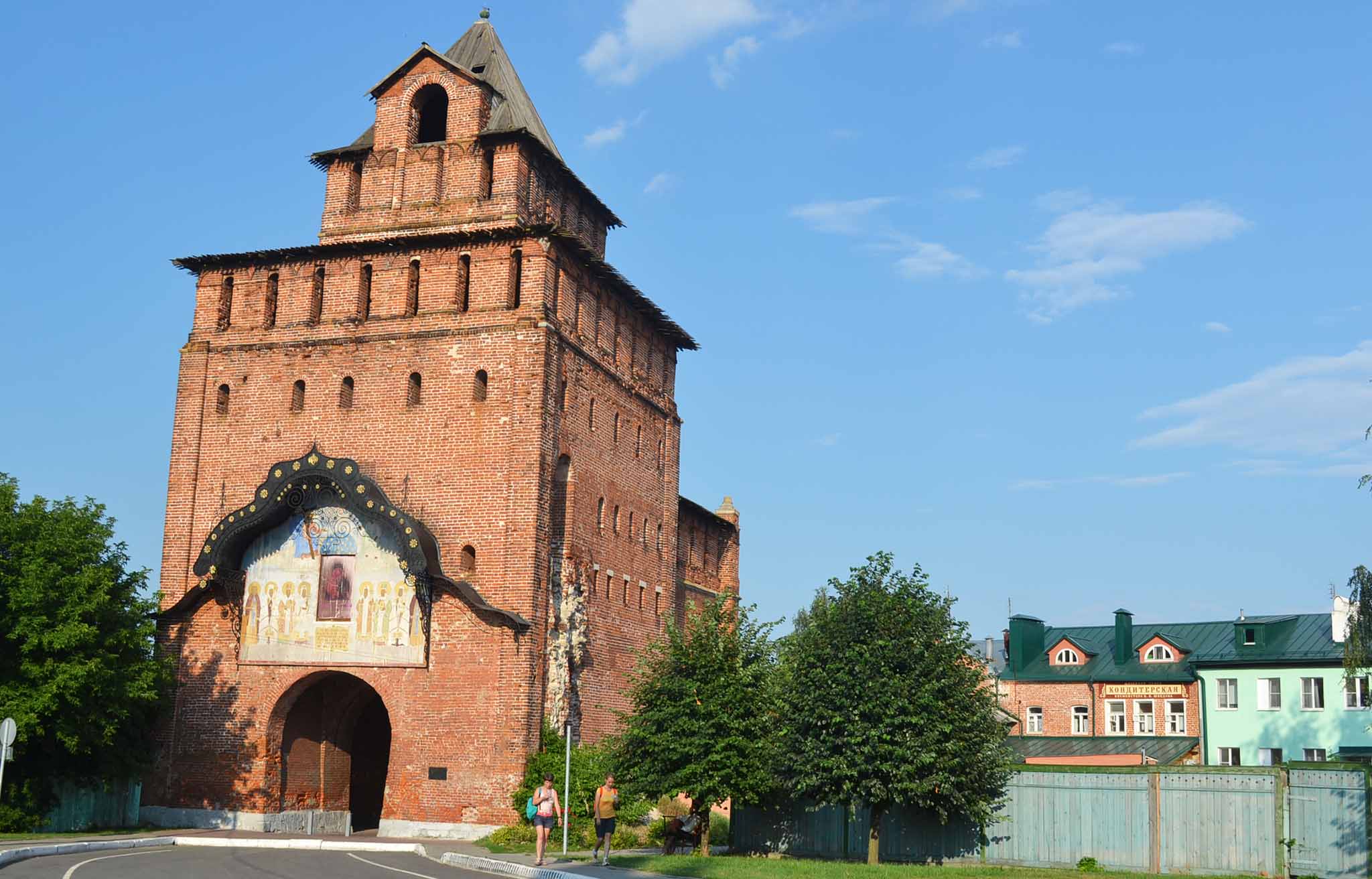 Он будто сошел с картинки из книжки. На фоне ярких башенок вас встречает городовой в форме позапрошлого века, с радостью фотографируется и рассказывает, что каменным кремль был не всегда, а только с XVI века. До нашего времени он, увы, дошел не весь. Из 17 башен уцелели 7, в том числе «Маринкина», в которой заточили полячку Марию Мнишек. Ну и Пятницкая, от нее начинается дорога, по которой Дмитрий Донской уходил на победоносную битву с Мамаем. Толщина башенных стен, к слову, два-три метра!