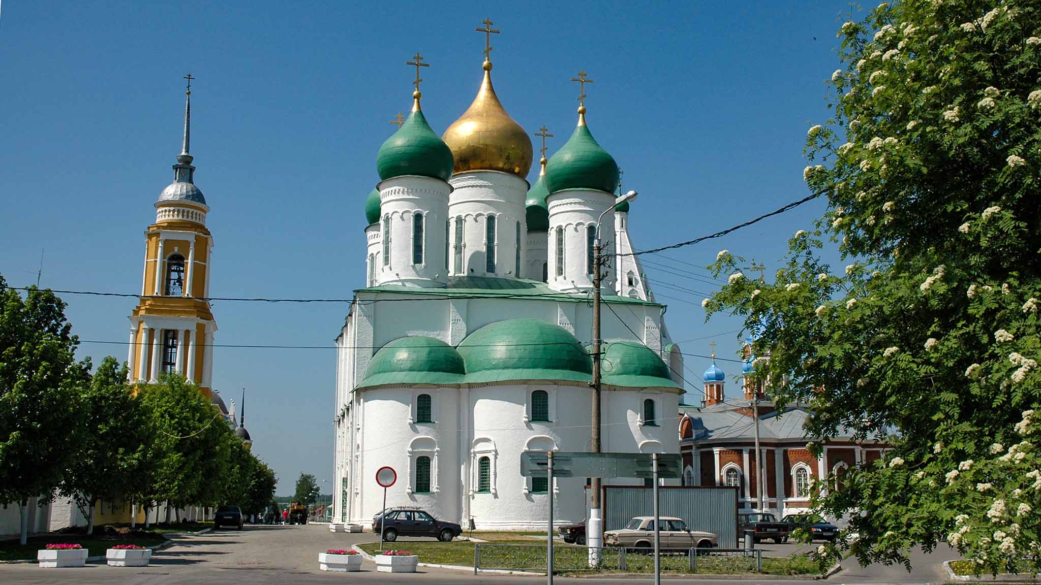 Интересно и приятно провести время здесь можно в любое время года. Очень хорошо в Коломне поздней весной и летом, когда все вокруг цветет и благоухает. На территории кремля много зелени, ухоженных газонов и симпатичных цветников. В этот период нежарко, легкий ветерок приносит приятную свежесть с рек и окрестных лугов.