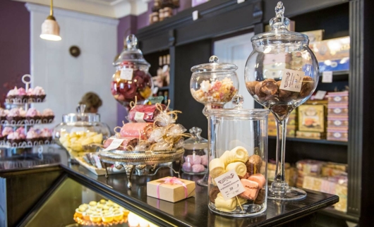 Коробочки с пастилой в магазине. Туристы охотно фотографируют аккуратные картонные коробки с оригинальным оформлением и шуточными надписями.