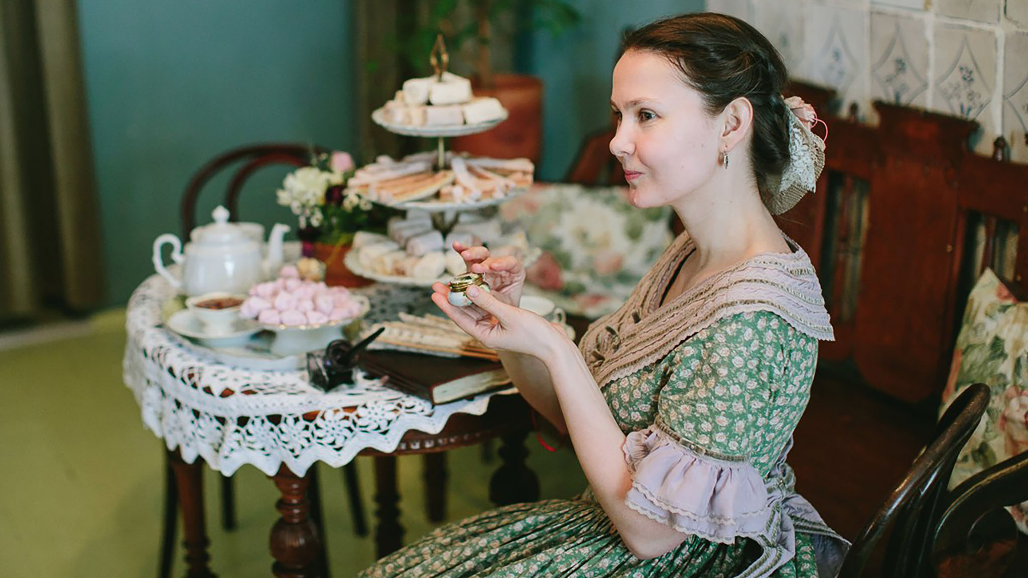 Гостиная купчихи. Интерьеры в ретро-стиле и накрытый стол — отличный фон для семейных снимков и фото с друзьями.