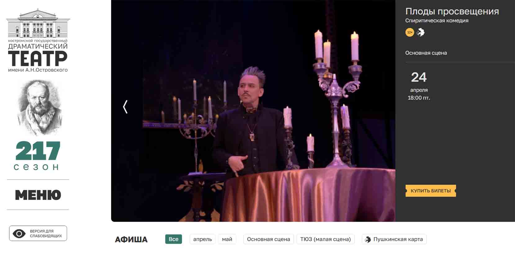 Зал небольшой, подкупает своей камерностью. Билеты раскупают быстро, лучше брать заранее на сайте. Есть места с ограниченной видимостью, поэтому имейте это ввиду при покупке. В театре работает буфет с хорошим ассортиментом и доступными ценами.