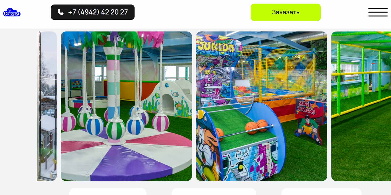 Игровой центр с аттракционами и кафе. Здесь дети смогут весело провести время в песочнице или сухом бассейне, прыгая на батутах, катаясь с горок, проходя настоящие лабиринты. Также на территории парка есть аэрохоккей, игровые автоматы, гонки с рулем, стрелялки, мотобайк и другие развлечения для всей семьи.