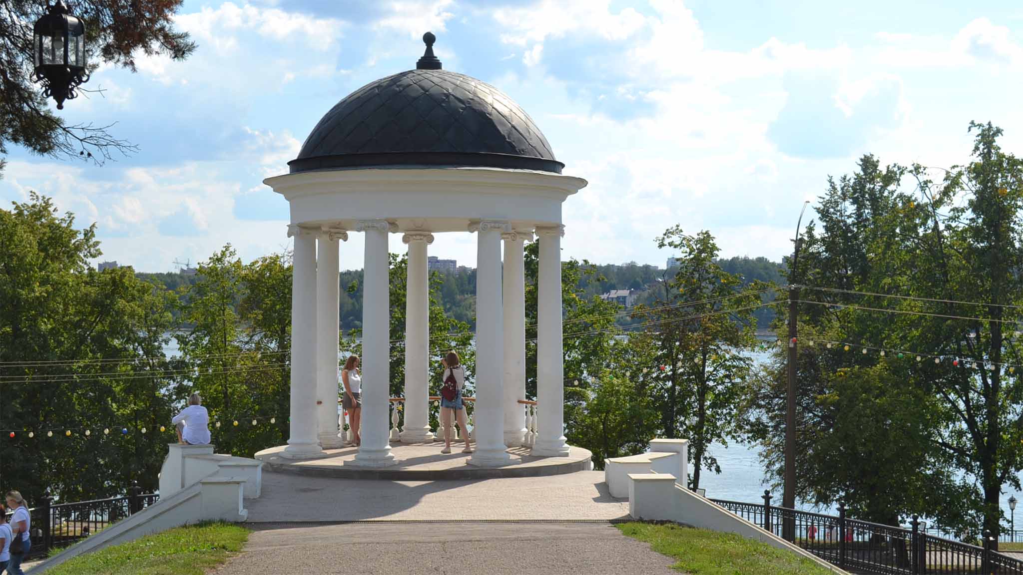 Беседка находится рядом с пристанью туристических теплоходов, поэтому замечательные панорамы открываются. В зимнее время беседка украшена иллюминацией, очень красиво. Но не хватает перил на лестнице при подъеме в беседку, так что учтите, что в гололед будет сложно.
