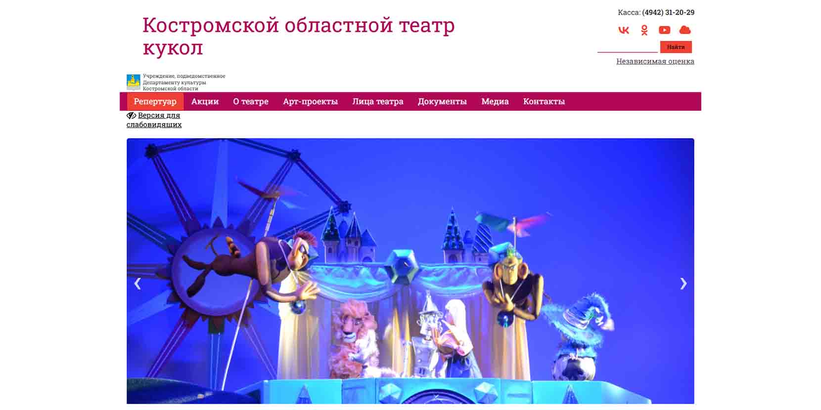 Театр кукол работает в Костроме с 1936 года, является дважды лауреатом премии «Золотая маска». Показывается спектакли для детей разного возраста, в том числе для самых маленьких. Также в театре проводят творческие встречи и мастер-классы.