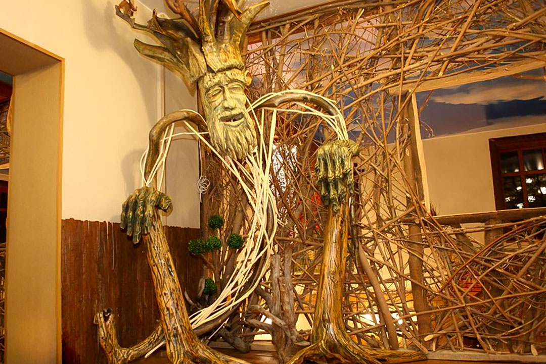 Здесь можно узнать о древних костромских ремеслах, услышать рассказ о целебных и магических свойствах растений, увидеть знакомых с детства сказочных персонажей — Бабу-Ягу, Водяного, Кикимору, Лешего, насладиться чарующей красотой изделий с самоцветами. А на мастер-классе можно попробовать себя в одном из старинных ремесел, например, — плетении из ивового прута.